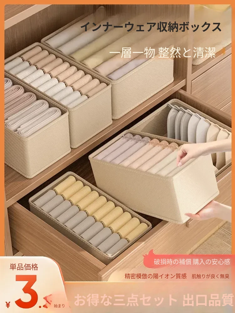 衣類収納ボックス|家用クローゼットに最適!下着やパンツを分けて整理できる布製折りたたみストレージバスケット|スペースを有効活用する便利なアイテム!