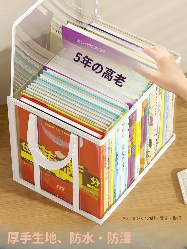 学生必見!透明防塵書本收納箱 - 超大容量で教室や家庭に最適な書籍収納袋。湿気から守り、整理整頓も簡単!古い本やおもちゃもスッキリ収納できます。