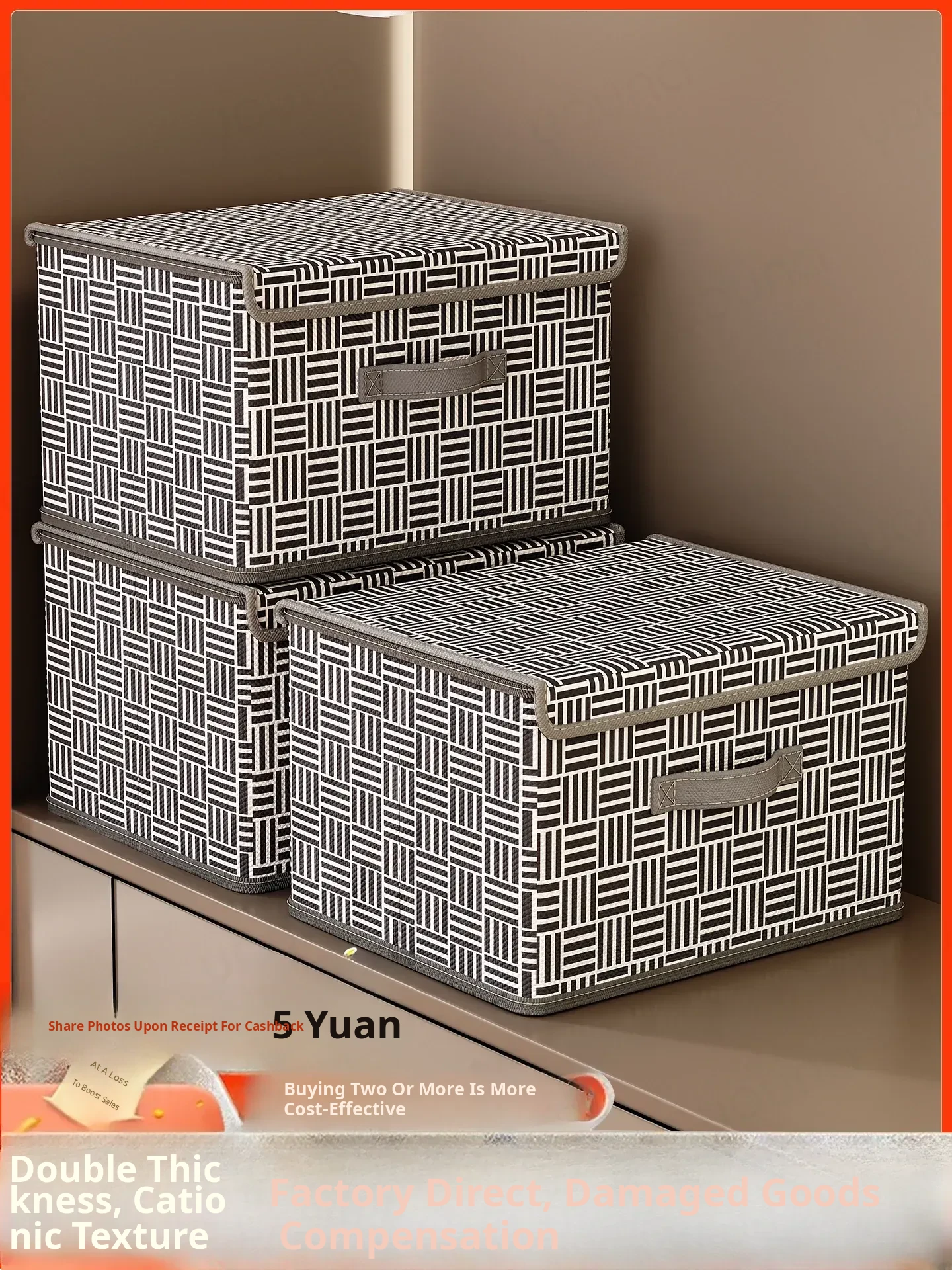 Large Capacity Fabric Storage Box with Lid - Foldable, Thickened Clothes Organizer for Home, Perfect for Closet Storage Solutions!