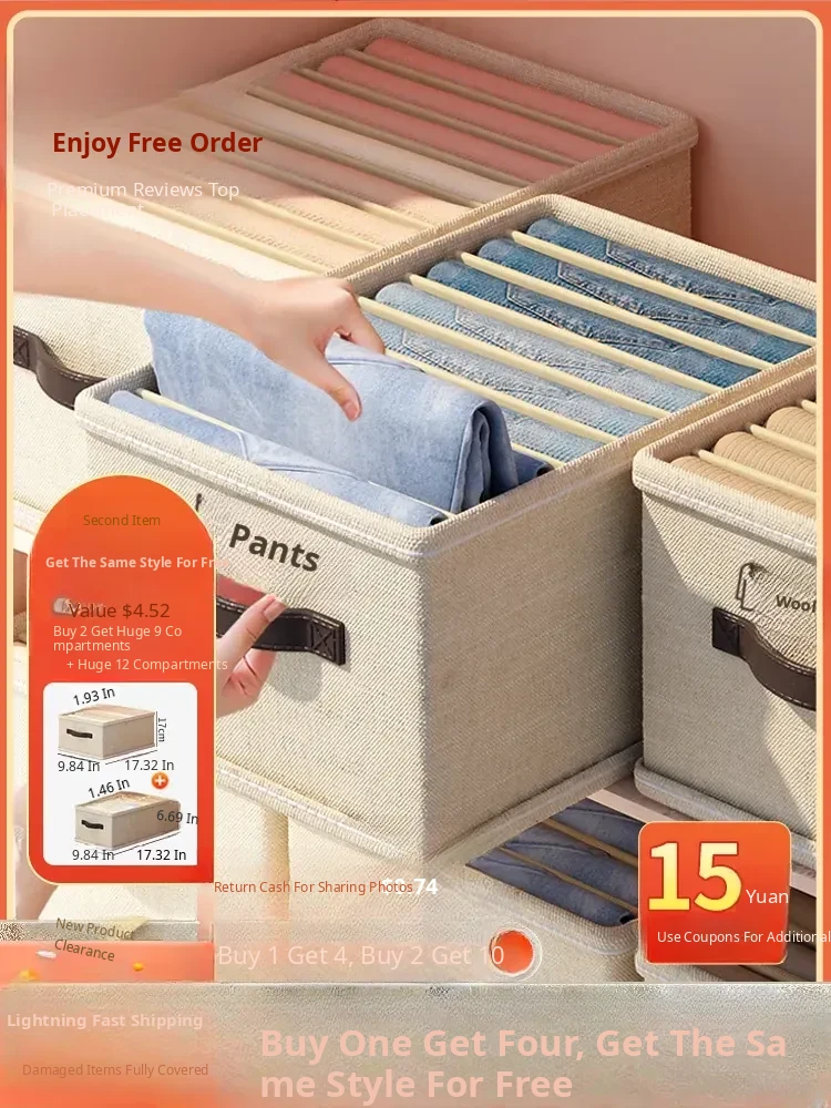 Cationic Fabric Storage Box - Multi-Layer Organizer for Closet, Perfect for Folding Clothes, Pants, and Accessories - Your Ultimate Storage Solution!
