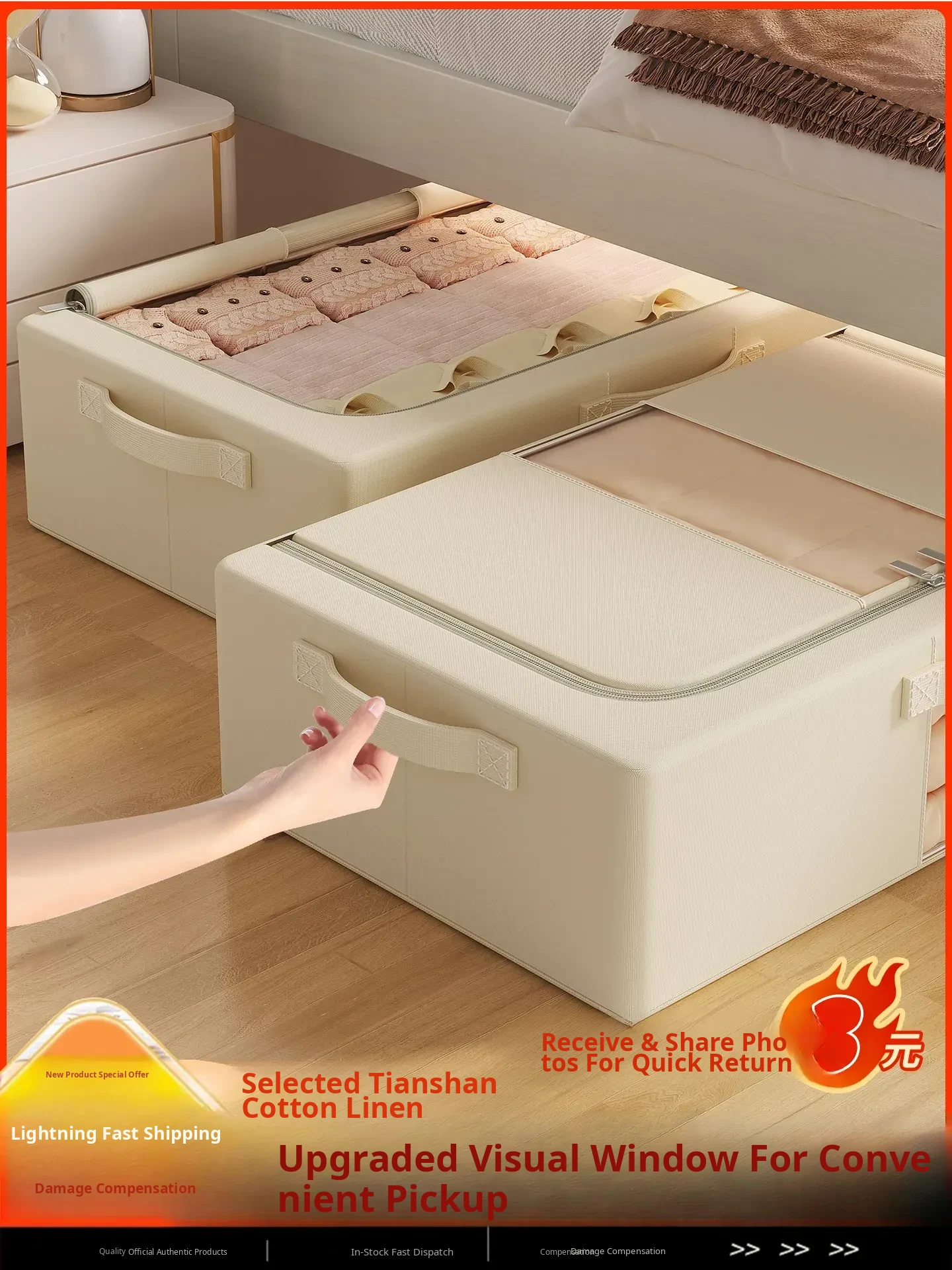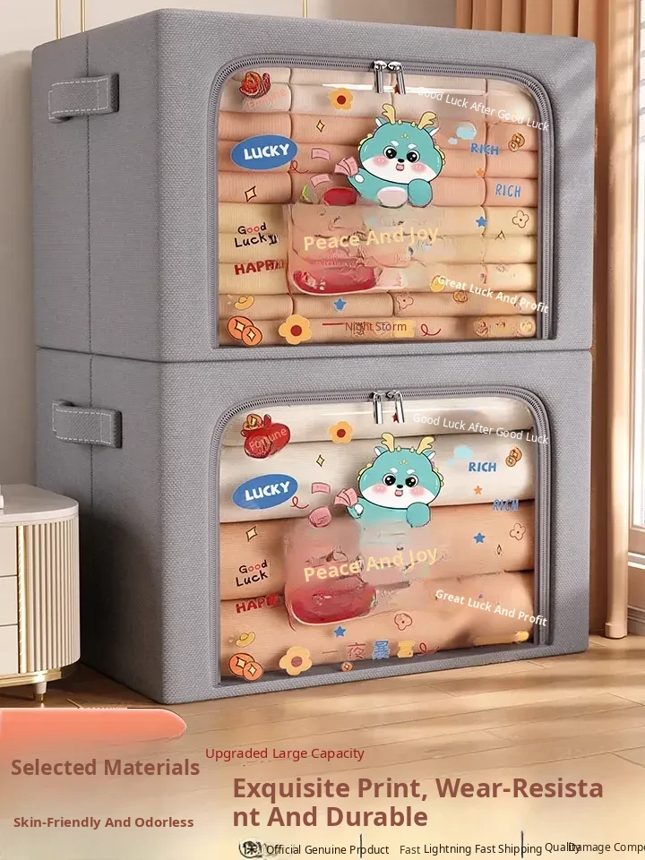 Large Capacity Storage Box for Clothes and Bedding - Home Organizer with Transparent Window, Perfect for Wardrobe Use, Fabric Design for Easy Visibility and Stylish Organization