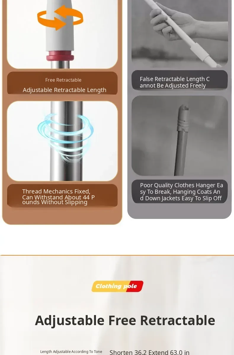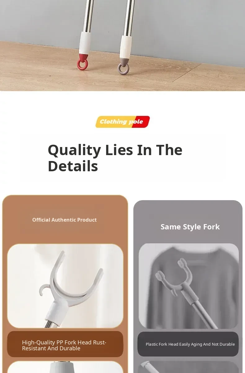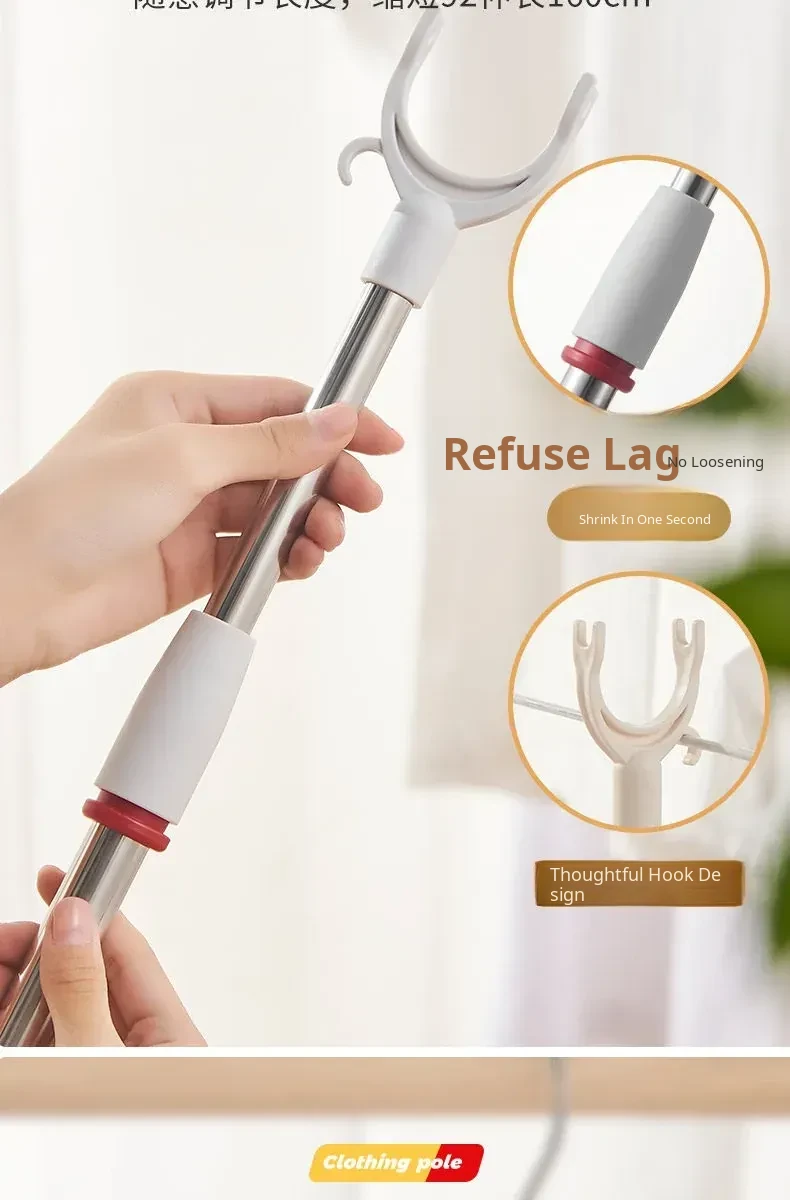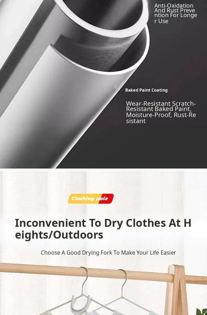 Adjustable Clothes Drying Rack with Forked Ends - Stainless Steel Clothes Hanger for Home Use, Perfect for Dorm Rooms and Outdoor Drying