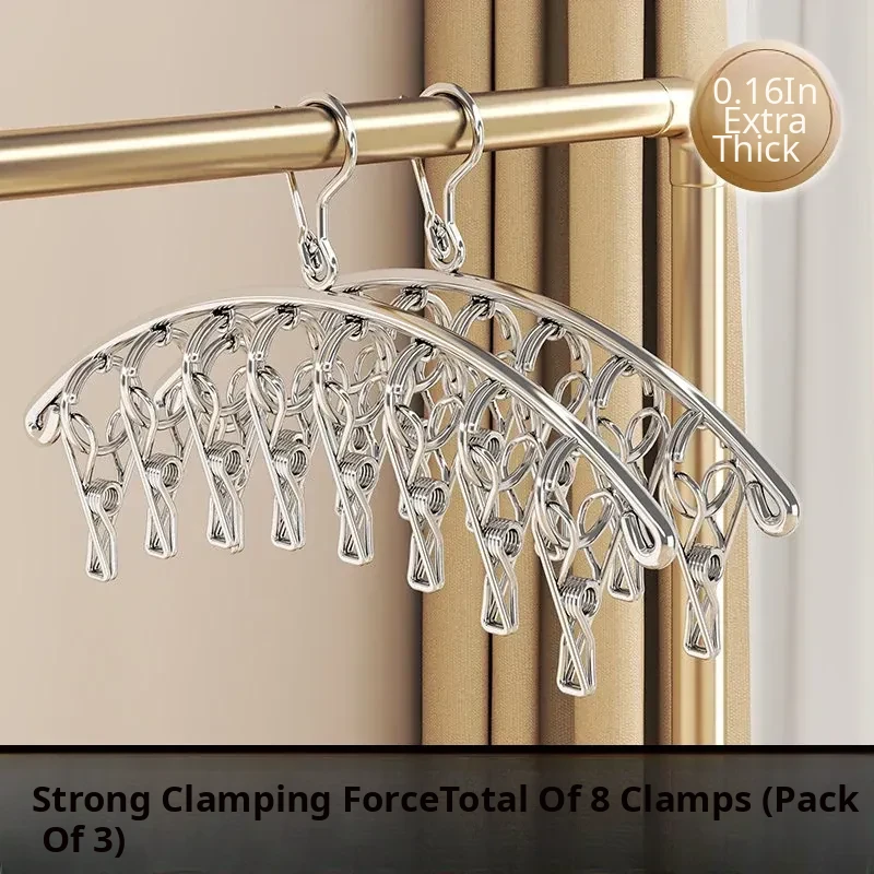 Heavy-Duty Windproof 8-Clip Hangers [304 Stainless Steel] - Strong Grip / Sun-Resistant & Non-Marking - 3-Pack