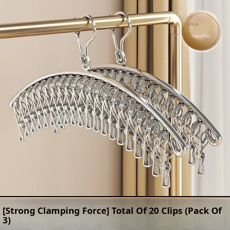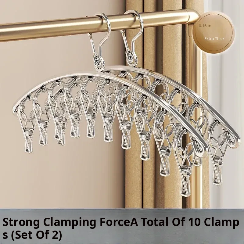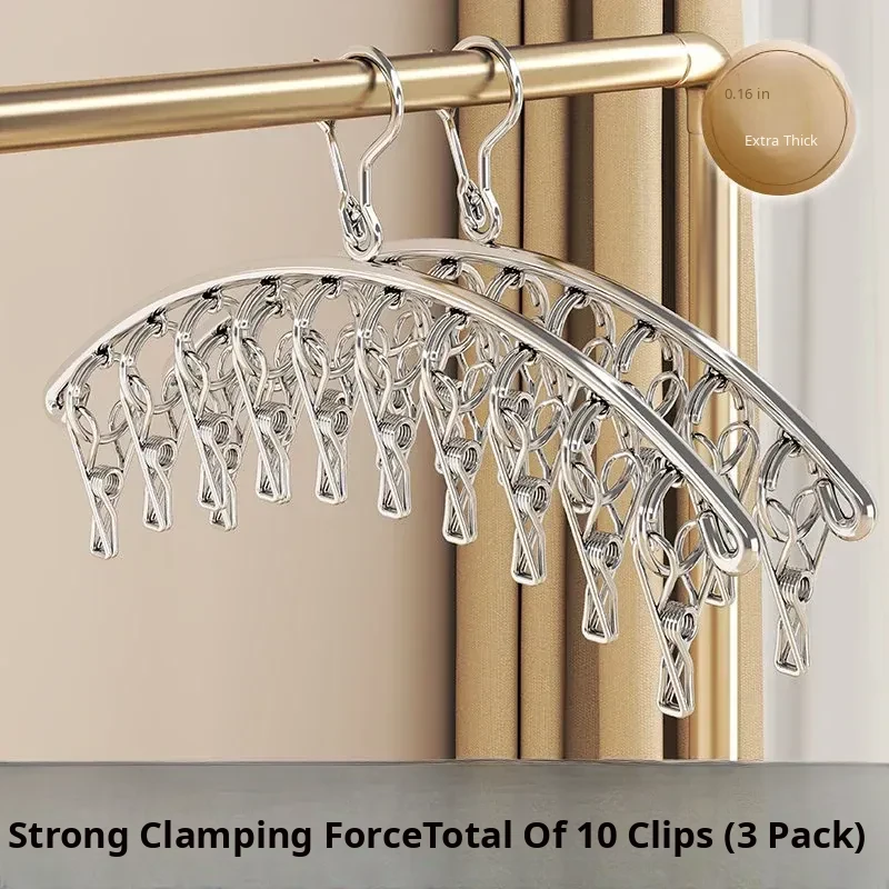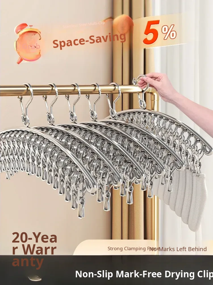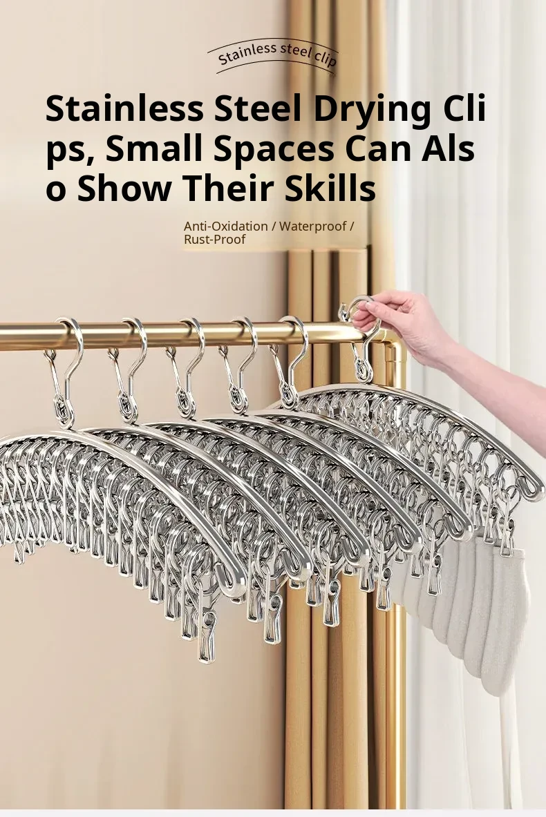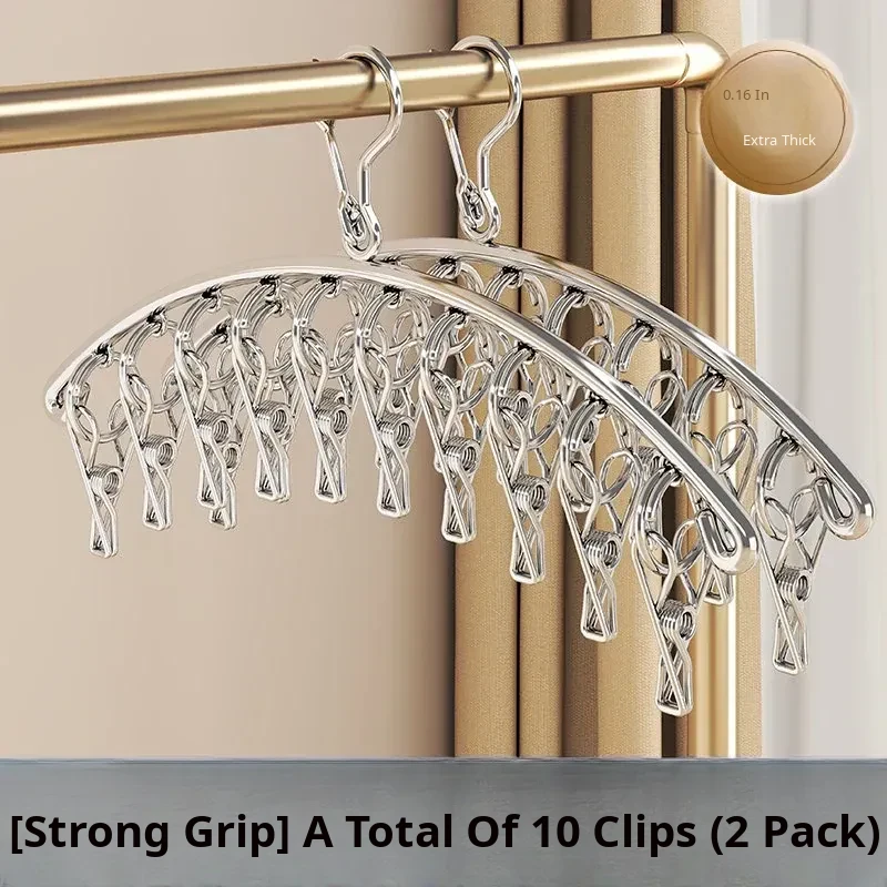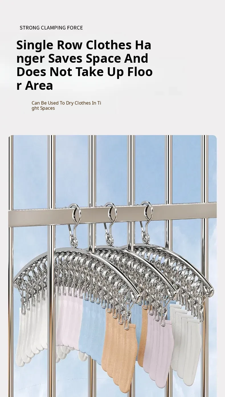 Multi-Clip Stainless Steel Clothes Drying Rack - Versatile Sock, Underwear & Dormitory Hook for Balcony Use, a Must-Have Laundry Essential!