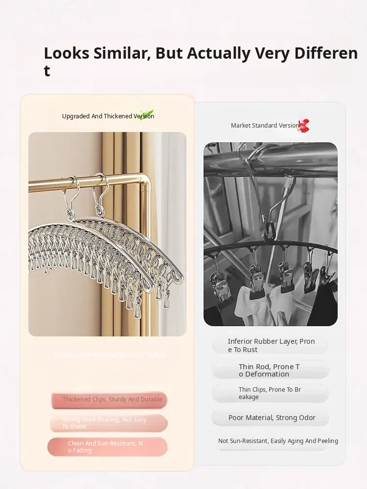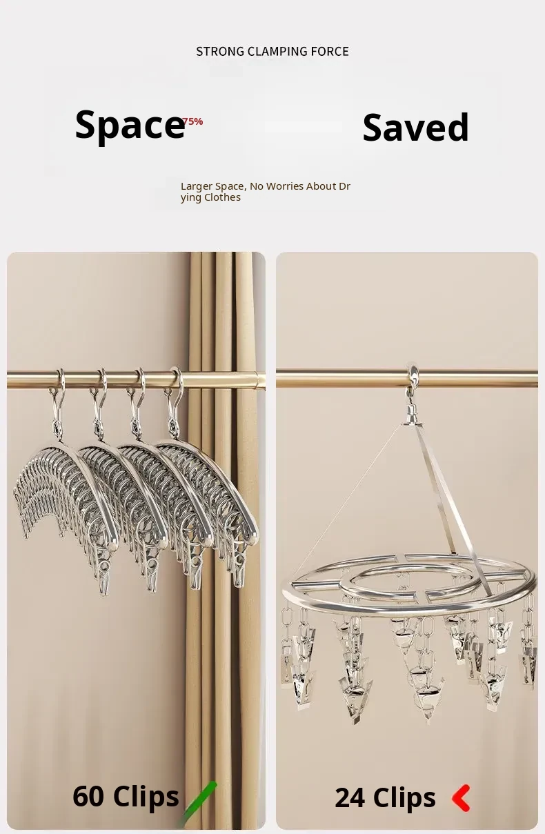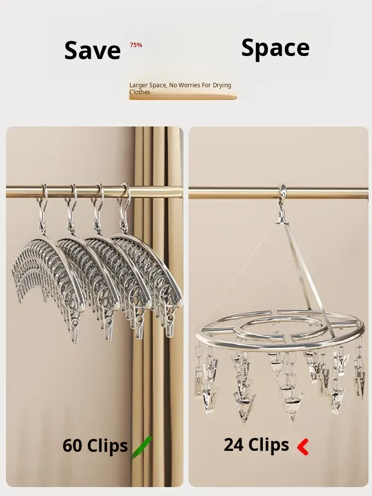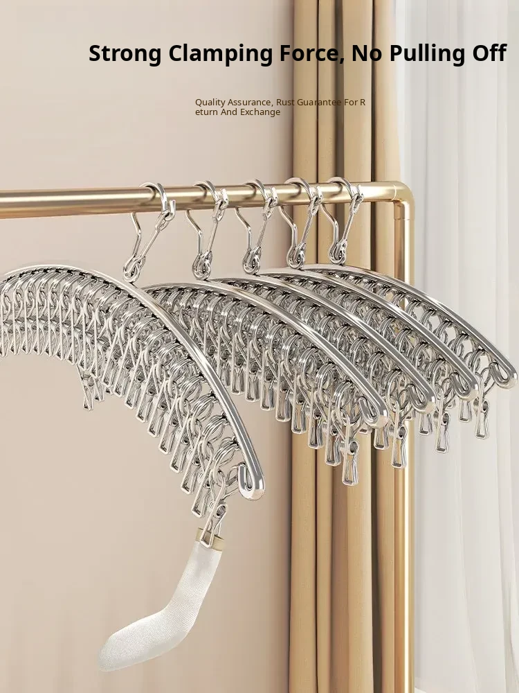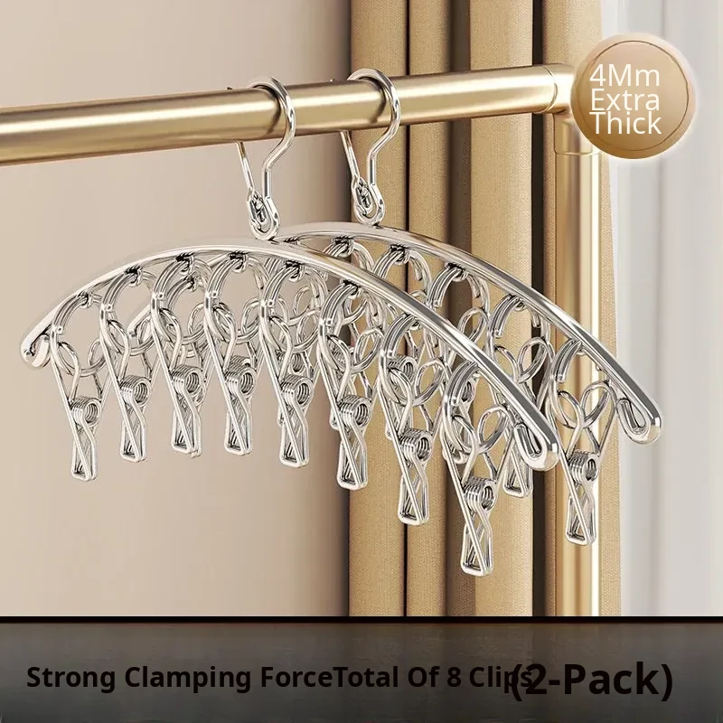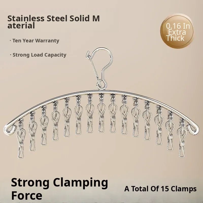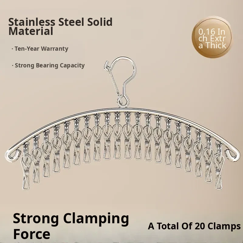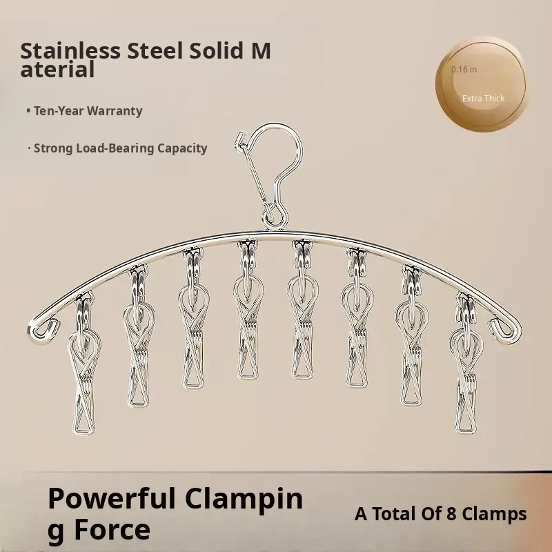 Multi-Clip Stainless Steel Clothes Drying Rack - Versatile Sock, Underwear & Dormitory Hook for Balcony Use, a Must-Have Laundry Essential!