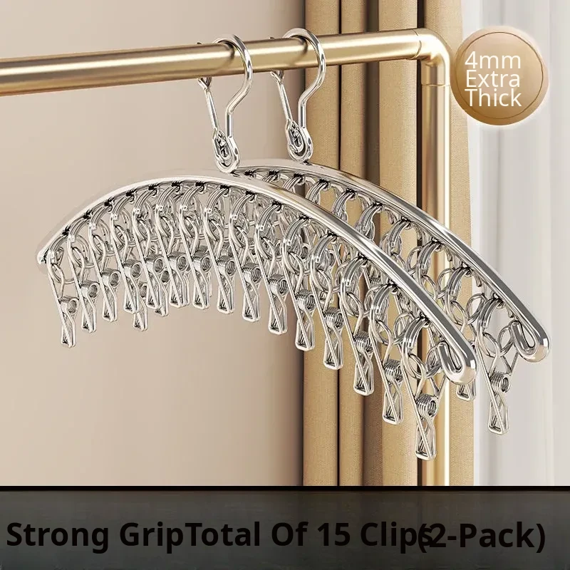 Heavy-Duty Windproof 15-Clip Hanger [304 Stainless Steel] - Strong Grip / Sun-Proof & Non-Marking - Single Pack