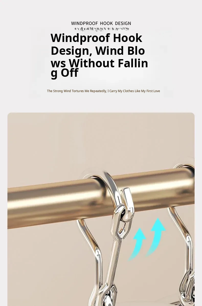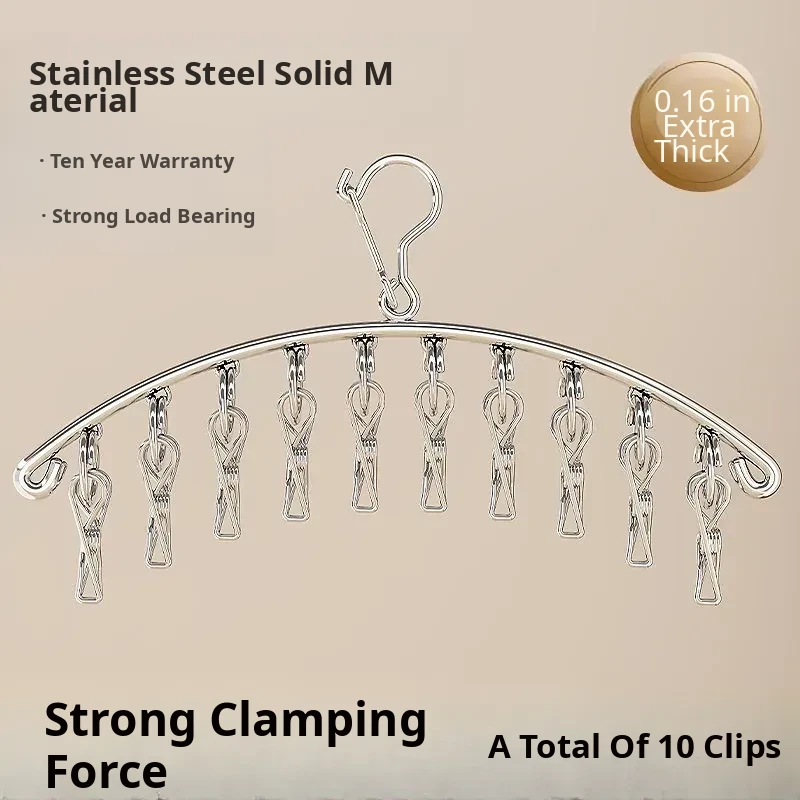 Heavy-Duty Windproof Clothes Hanger with 10 Clips - [304 Stainless Steel] - Extra Strong Grip⭐Sun Protection Without Trace⭐1 Pack