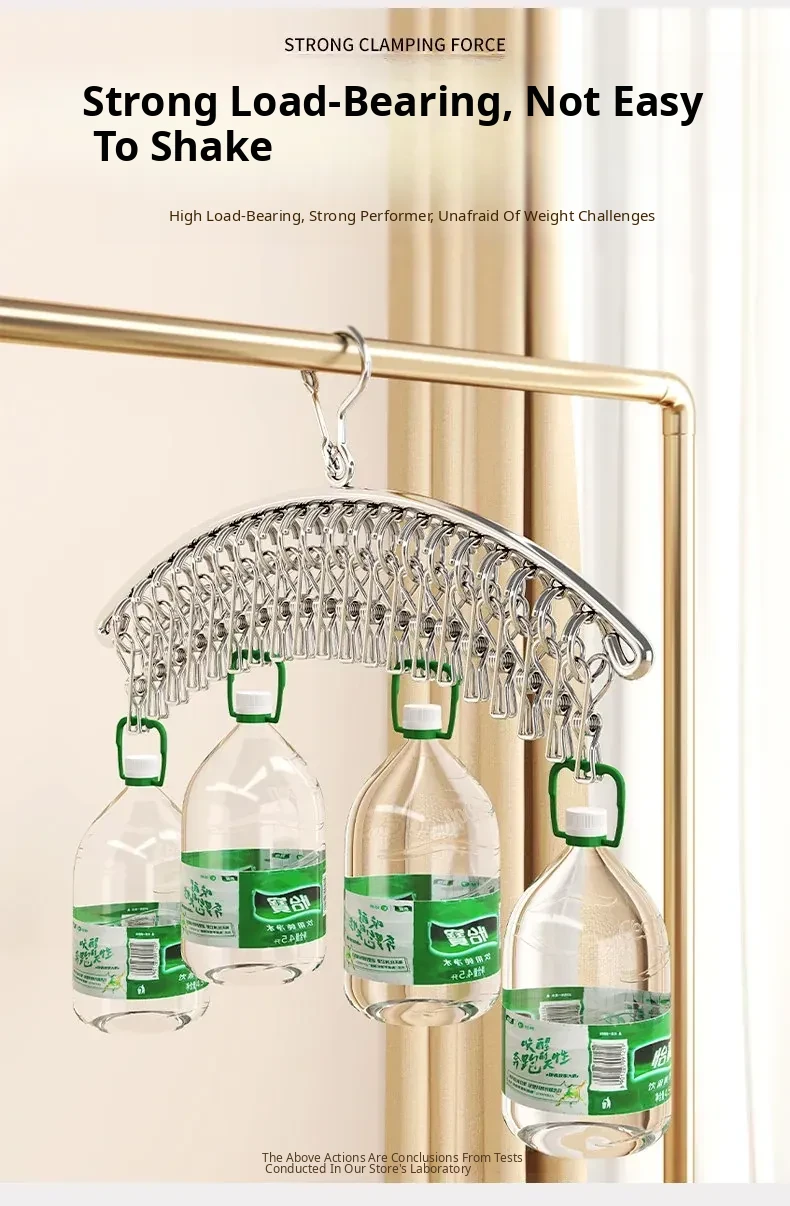 Heavy-Duty Windproof 20-Clip Hanger [304 Stainless Steel] - Strong Clips / Sun-Proof & Non-Marking - Single Pack
