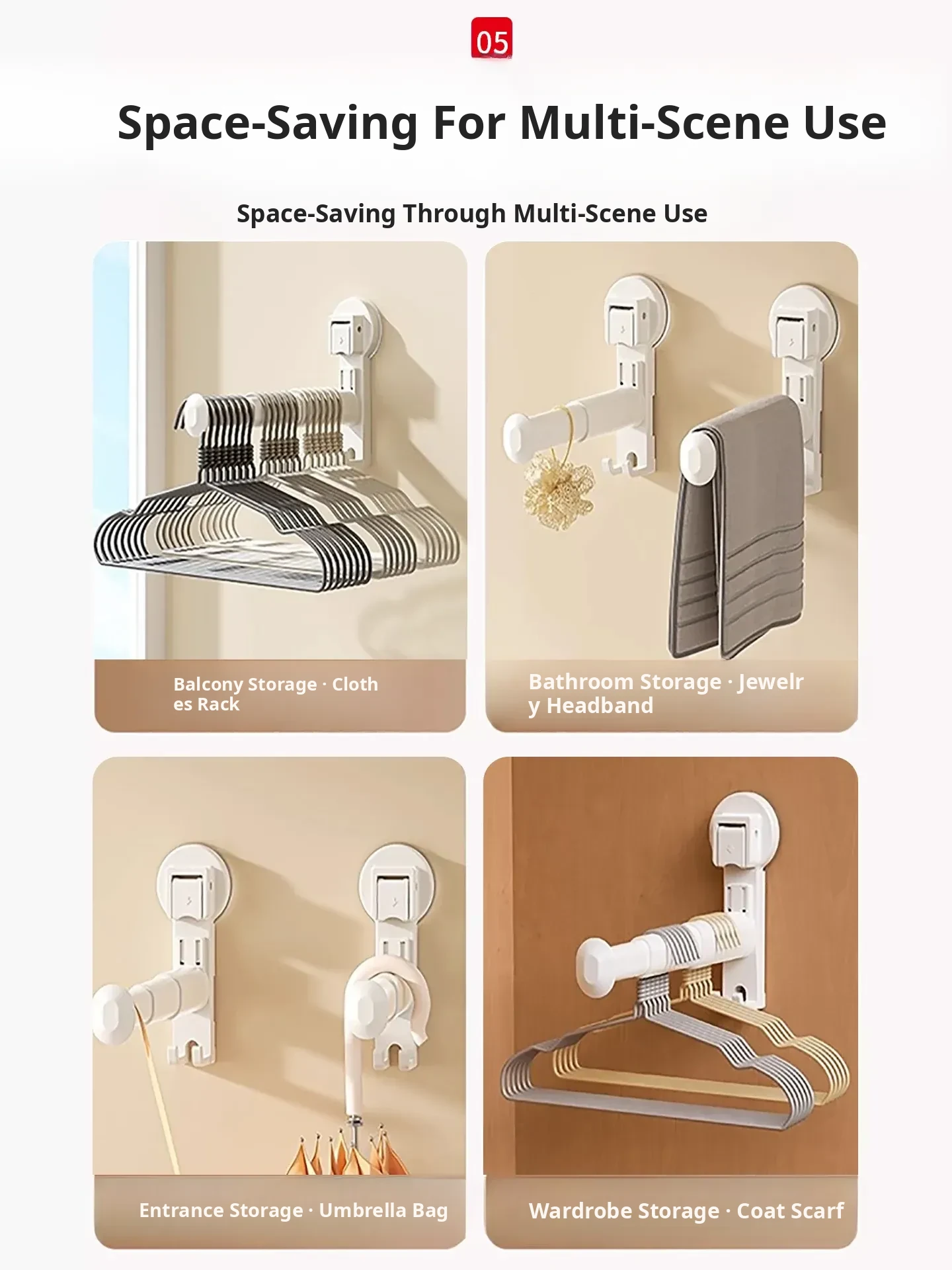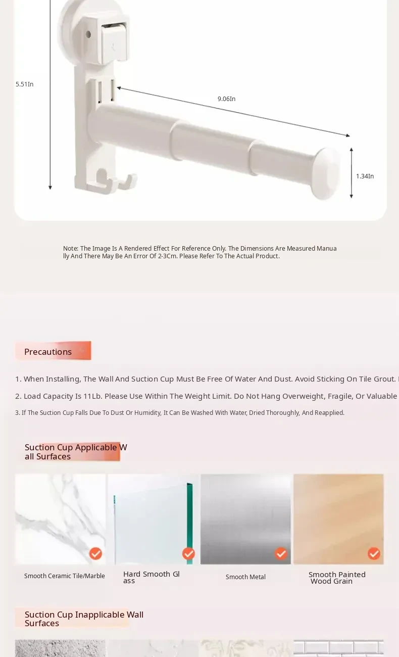 Milk White - Upgraded Telescopic [Long-Term Suction/Weight Bearing about 15kg / Suitable for 99% of Walls]