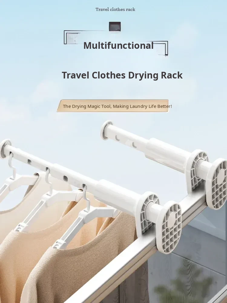 Portable No-Drill Travel Clothes Drying Rack - Adjustable Multi-Functional Invisible Folding Clothes Hanger for Hotels and Balconies - Your Ultimate Drying Solution!