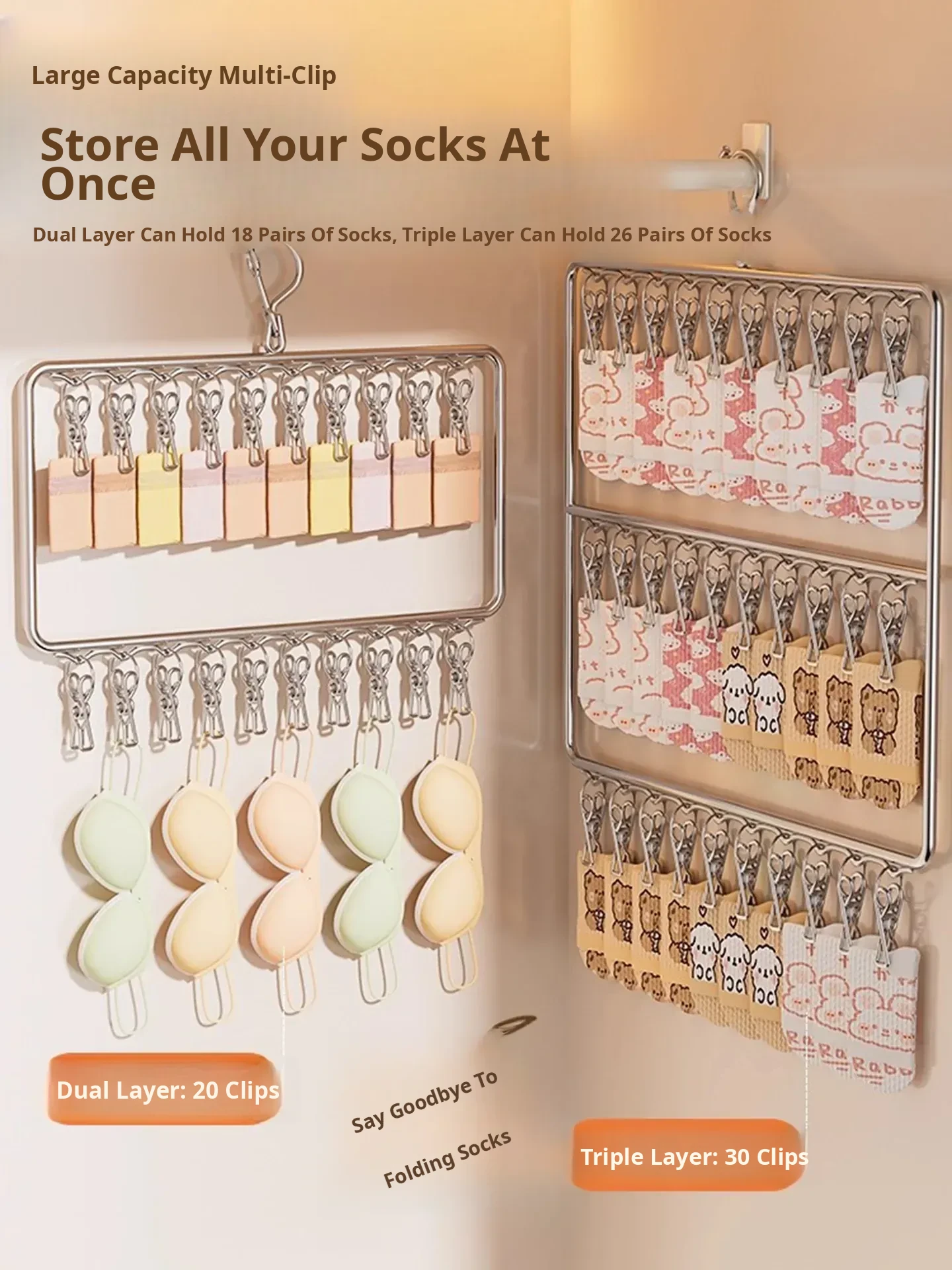 [Matching Combination] 2 Layers of 20 Clips + 3 Layers of 30 Clips [Strong Clamping Force] ⭐ No Odor] Windproof/Anti-Rust/Space-Saving