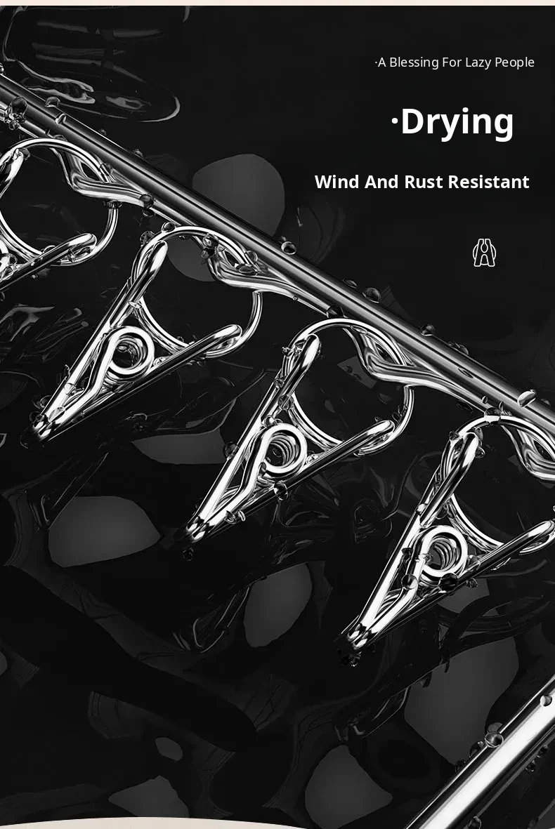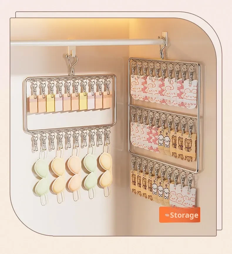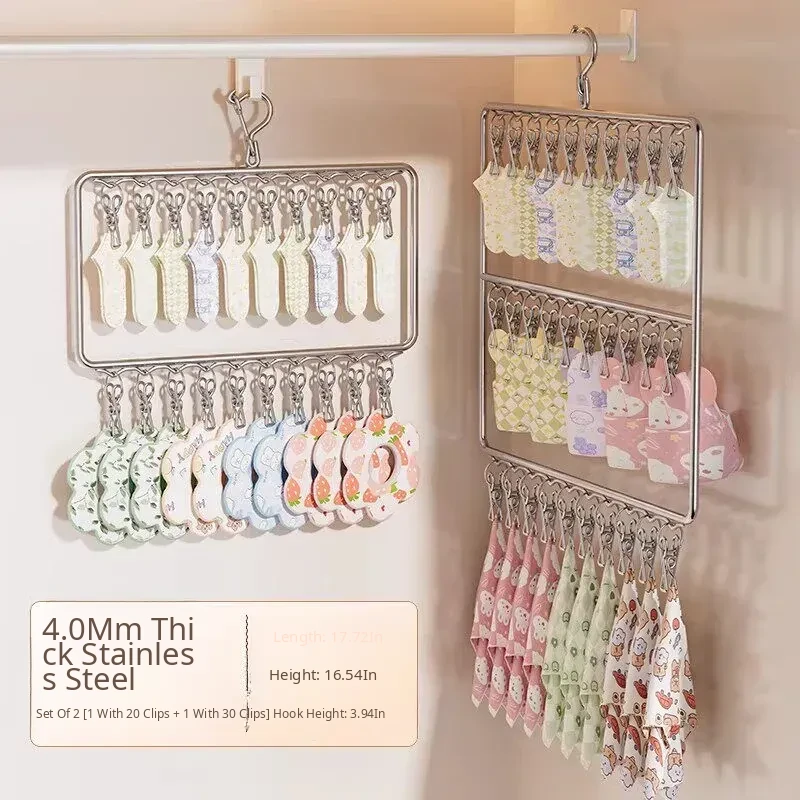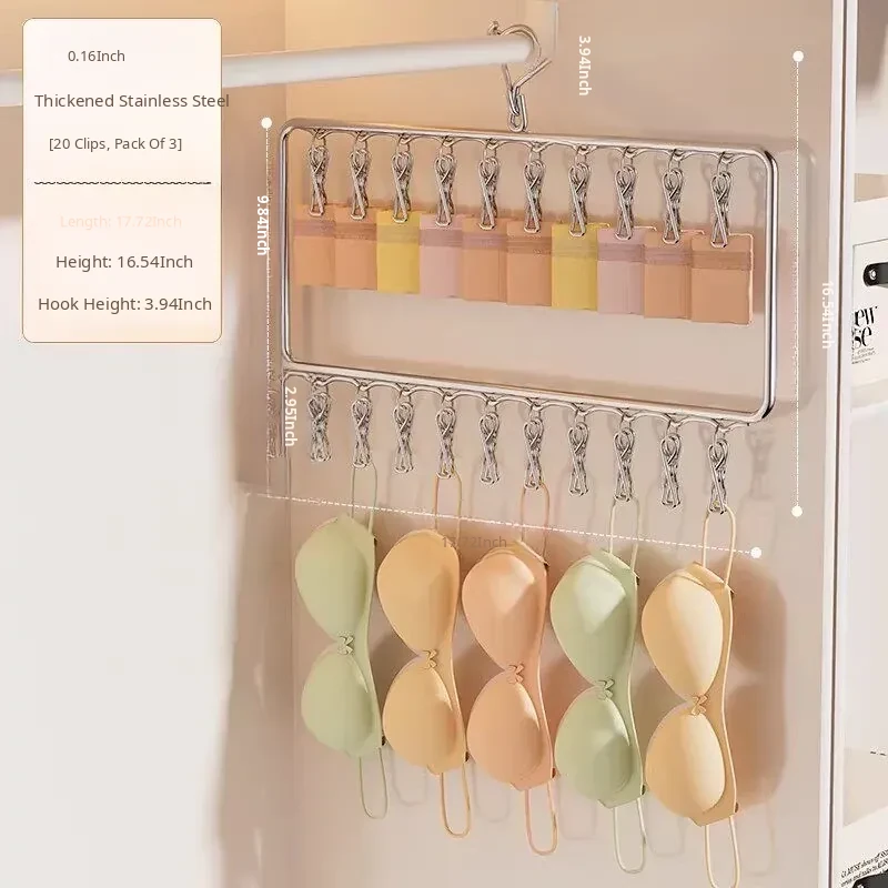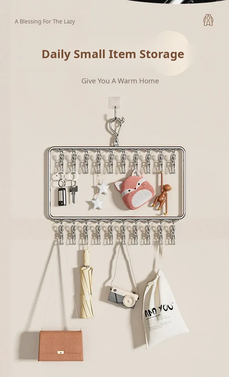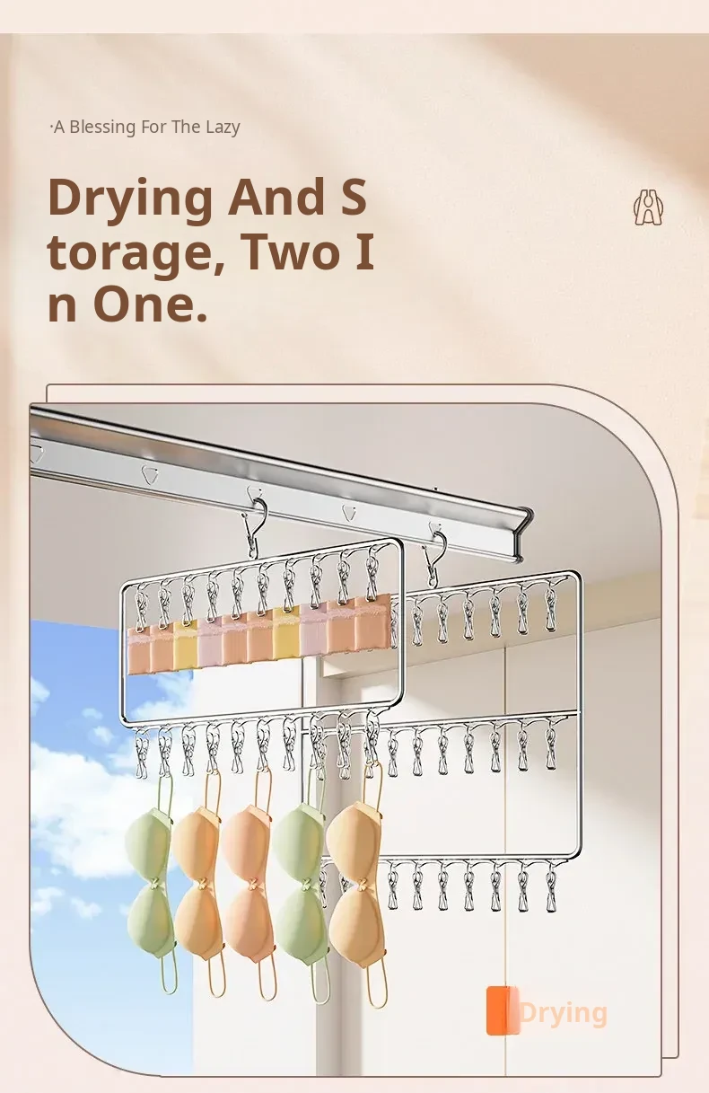 Stainless Steel Sock Drying Rack with Multiple Clips – Versatile Multifunctional Clothesline for Socks and Towels, Ideal for Dorms, Windproof Hanging Hooks, Space-Saving Design