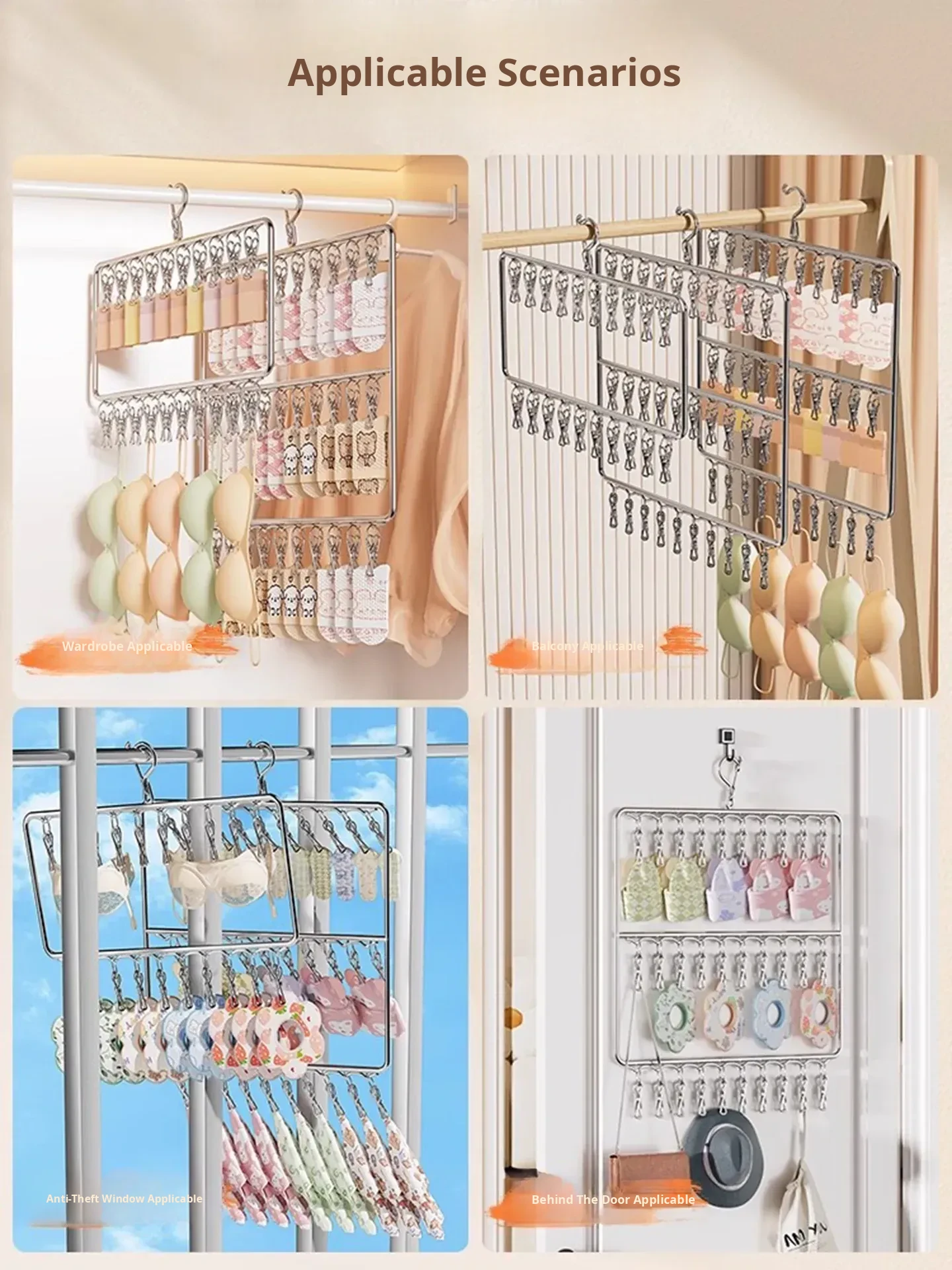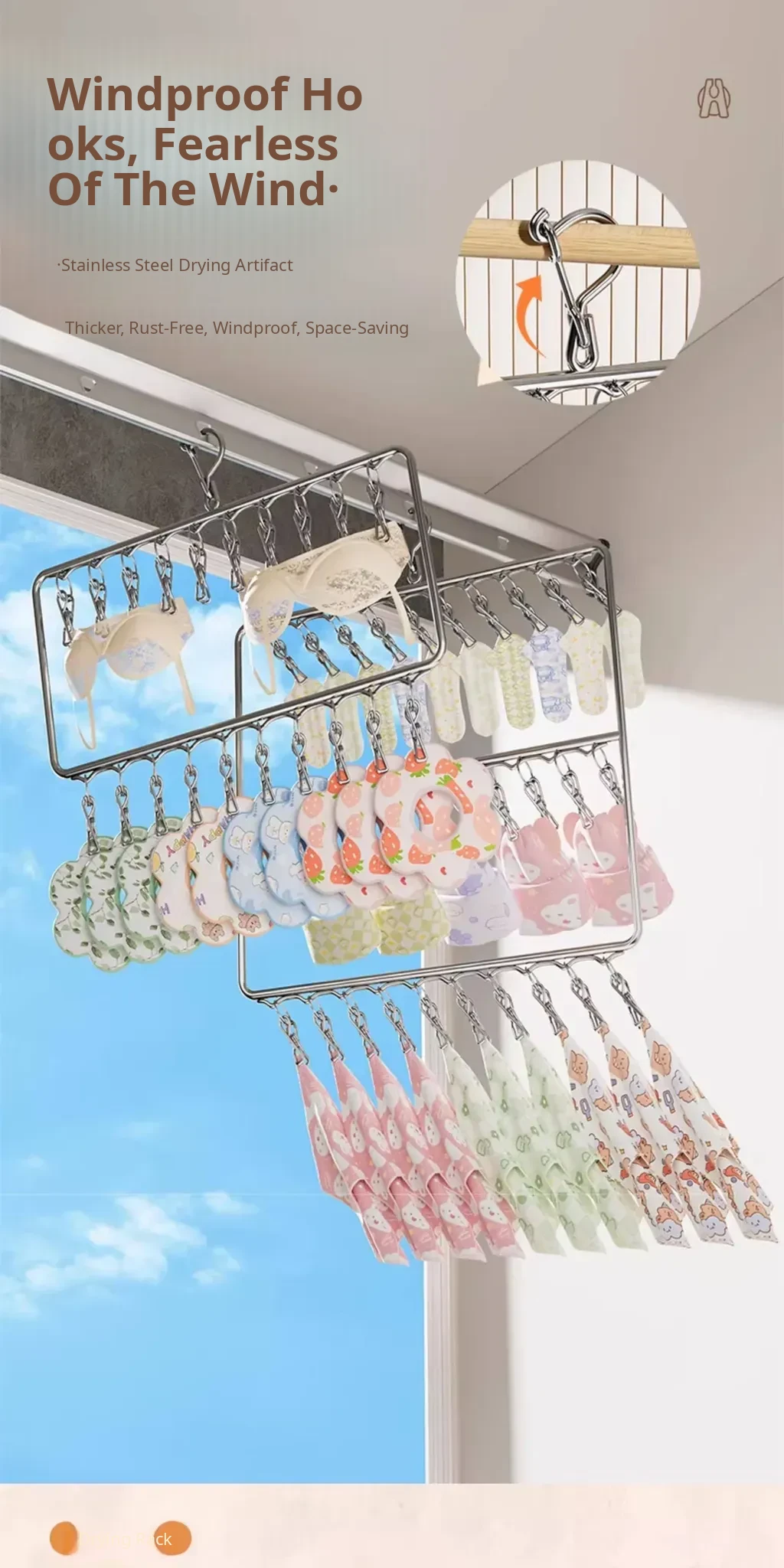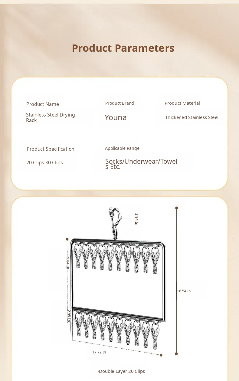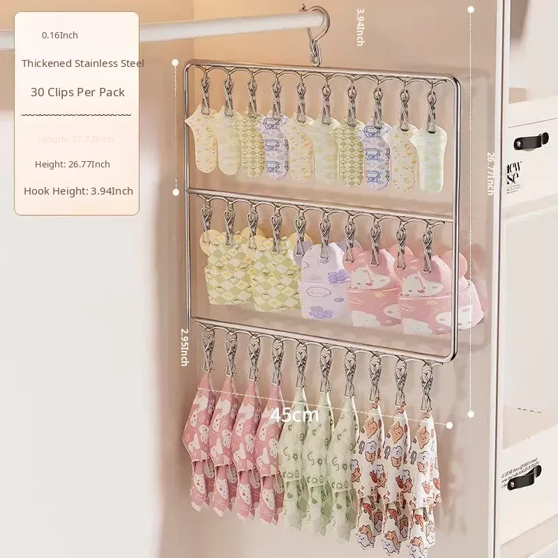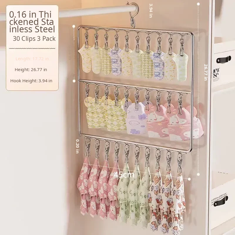 Stainless Steel Sock Drying Rack with Multiple Clips – Versatile Multifunctional Clothesline for Socks and Towels, Ideal for Dorms, Windproof Hanging Hooks, Space-Saving Design