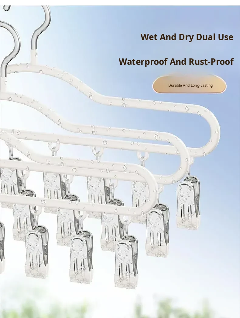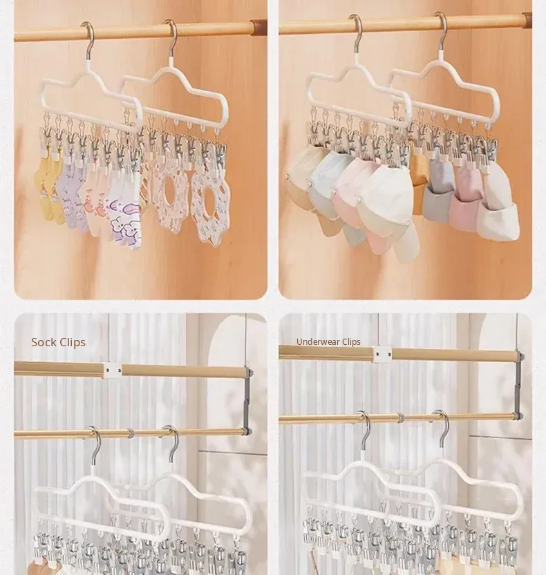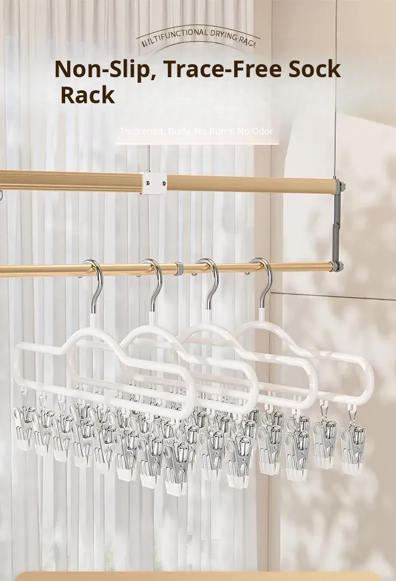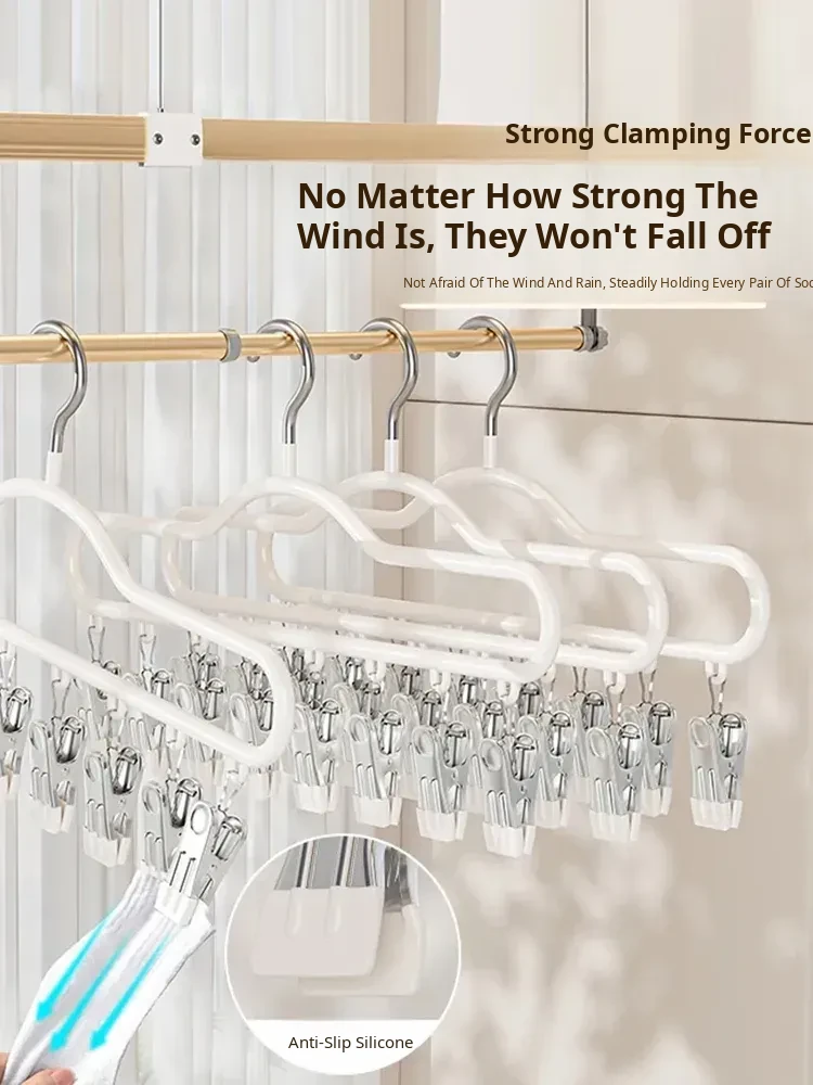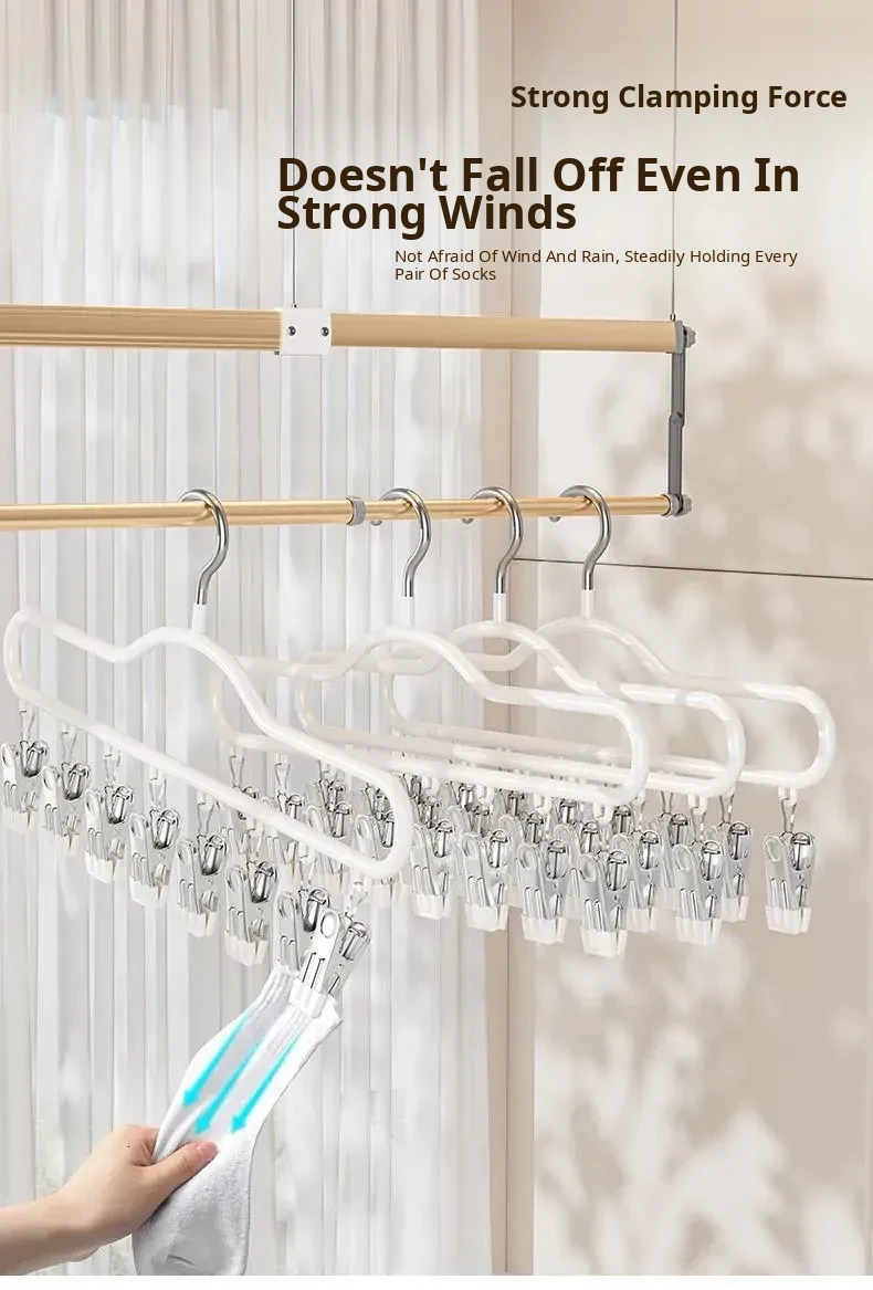 Stainless Steel Sock Drying Rack with Multiple Clips - Versatile Indoor and Balcony Clothesline for Underwear and Socks - Windproof Drying Solution for Home Use