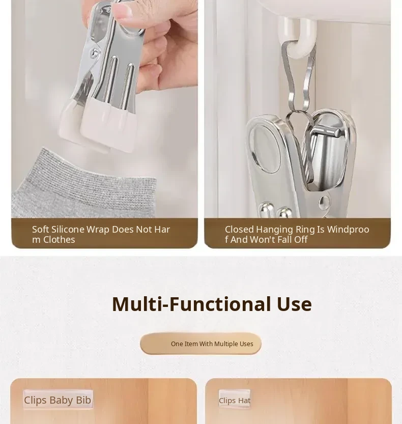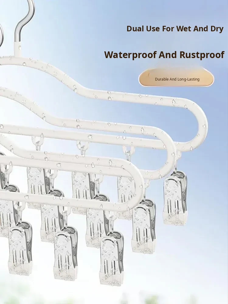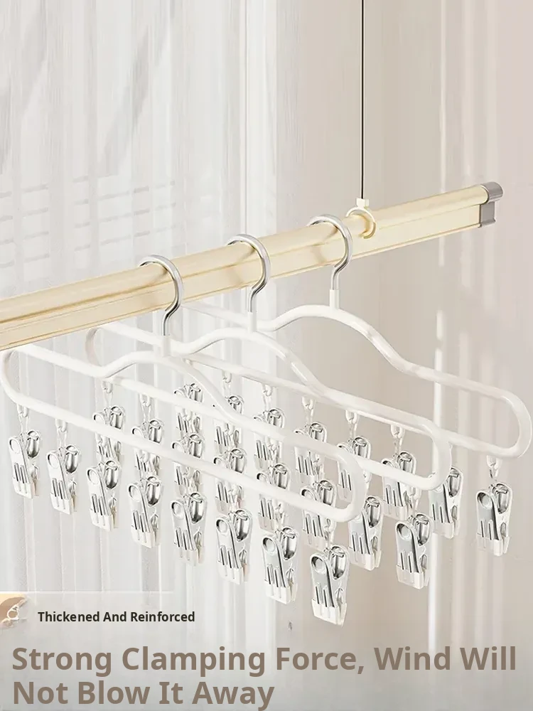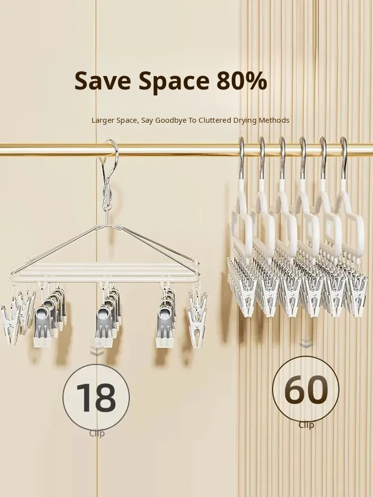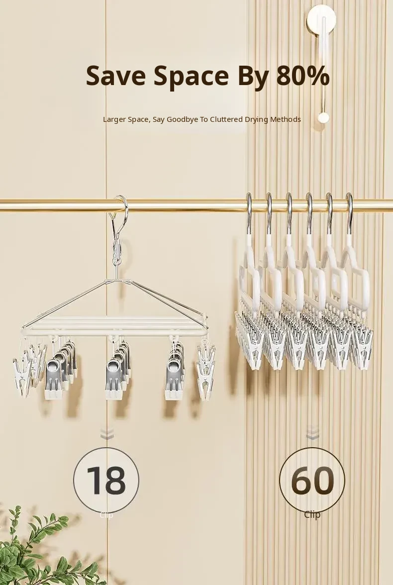 Stainless Steel Sock Drying Rack with Multiple Clips - Versatile Indoor and Balcony Clothesline for Underwear and Socks - Windproof Drying Solution for Home Use