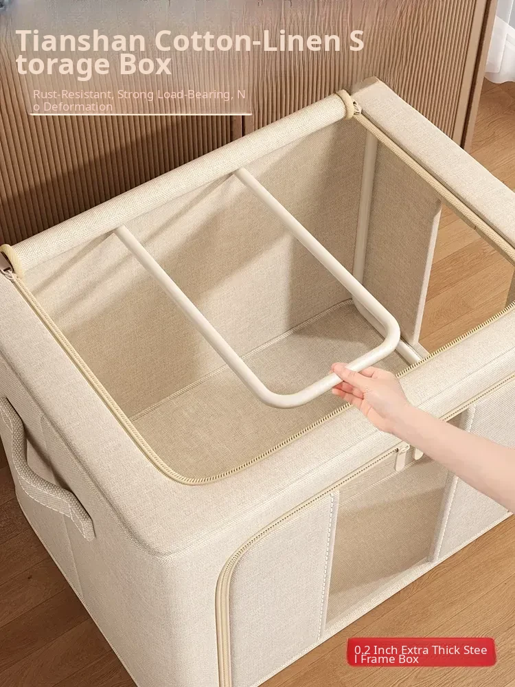 Tianshan Cotton-Linen Down Jacket Storage Box - Stylish Fabric Organizer for Home Wardrobe, Perfect for Comforters and Clothing, Foldable and Space-Saving Design
