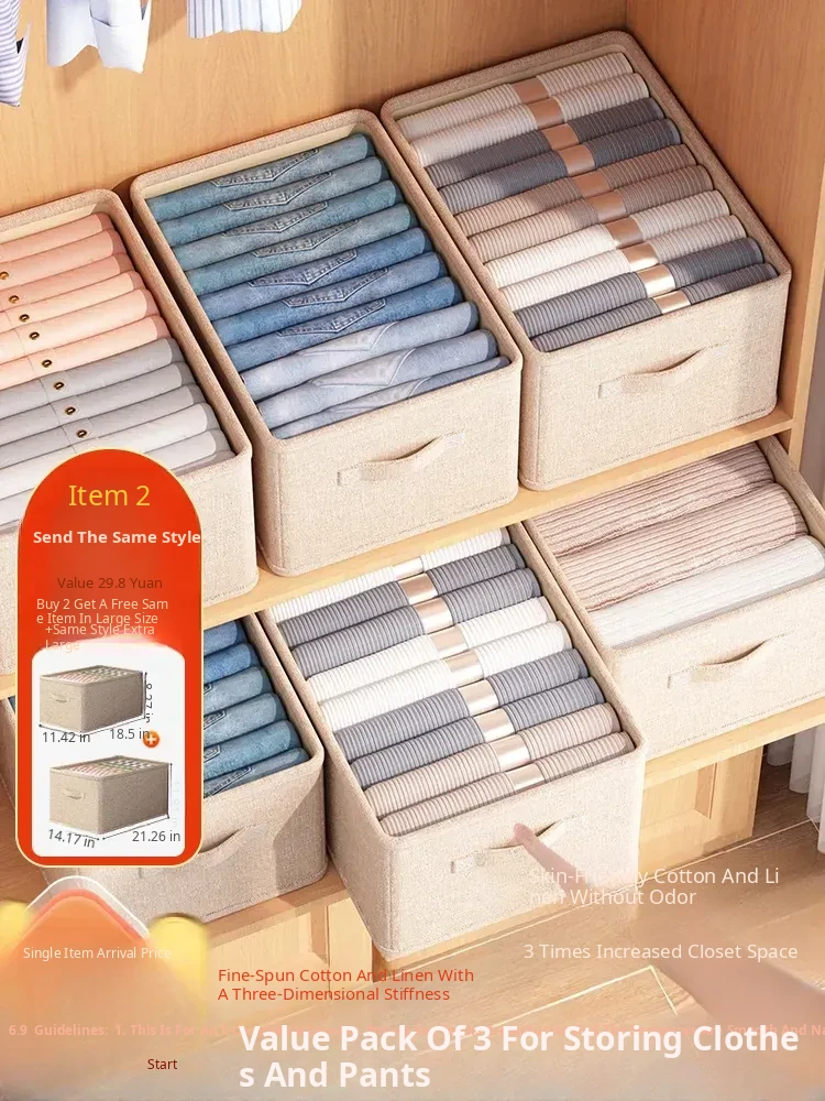 Foldable Drawer Storage Bins - Essential Home Organizer for Clothes and Pants, Made of Cotton and Linen, Layered Design for Efficient Closet Organization
