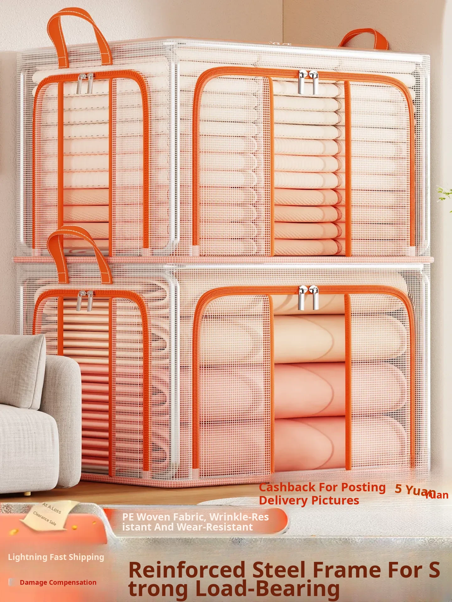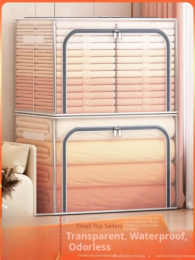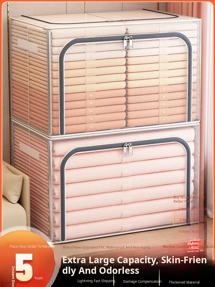 Large Capacity Home Storage Box for Clothes - Transparent, Foldable Fabric Organizer for Bedding and Clothing. Perfect for Decluttering and Maximizing Space!
