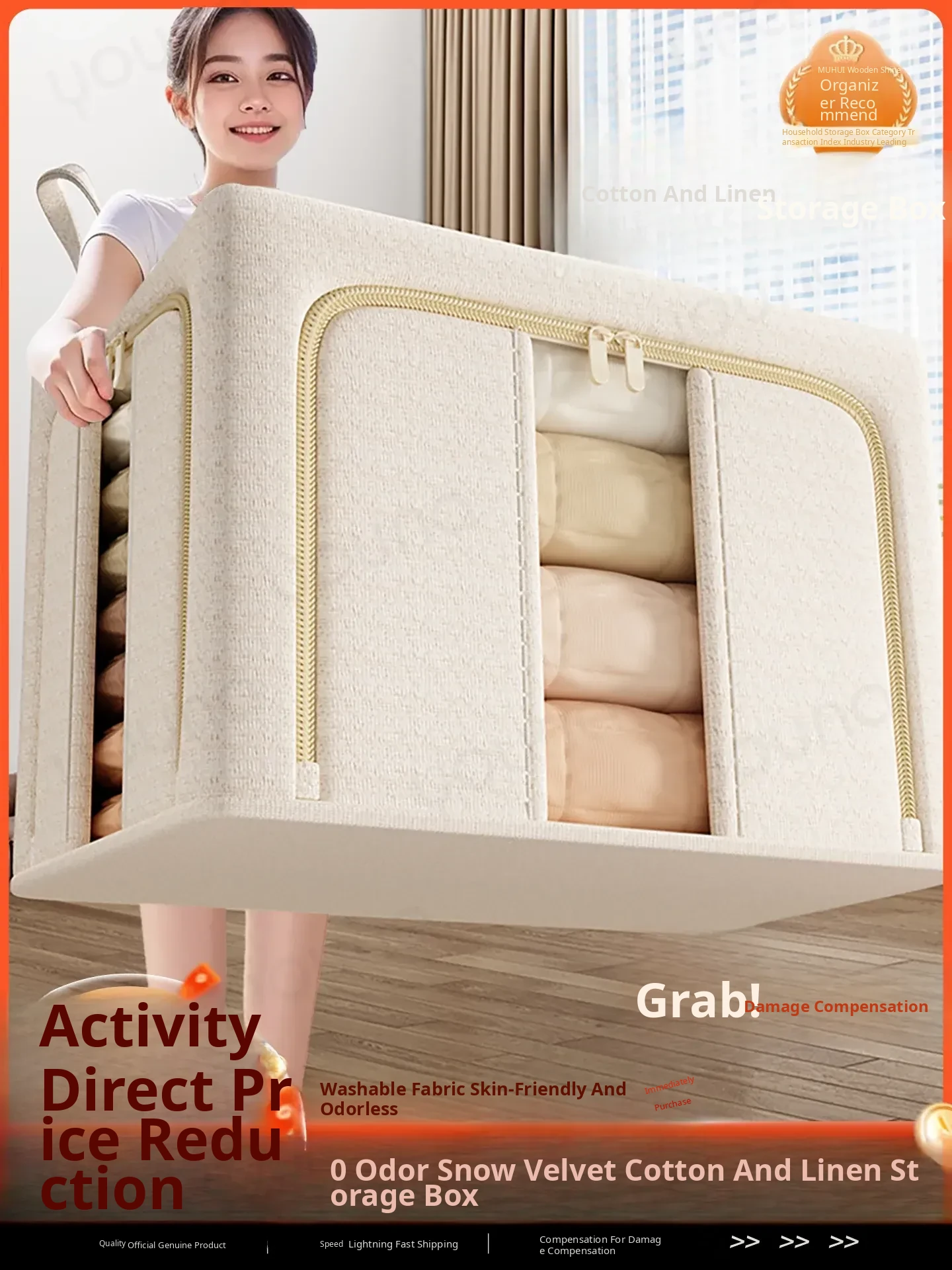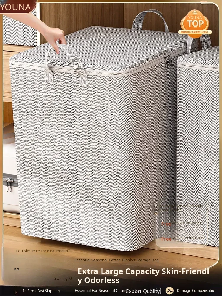 Tianshan Cotton and Linen Storage Box – Foldable Fabric Organizer for Seasonal Clothing and Bedding, Perfect for Wardrobe Organization and Decluttering at Home