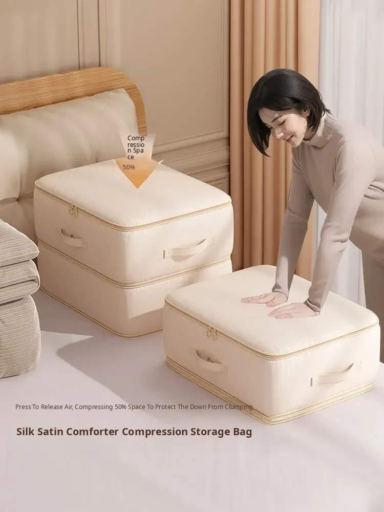 Luxury Satin Quilt Storage Bag - Compression Bag for Down Jackets and Bedding, Perfect for Organizing and Packing for Travel or Moving!