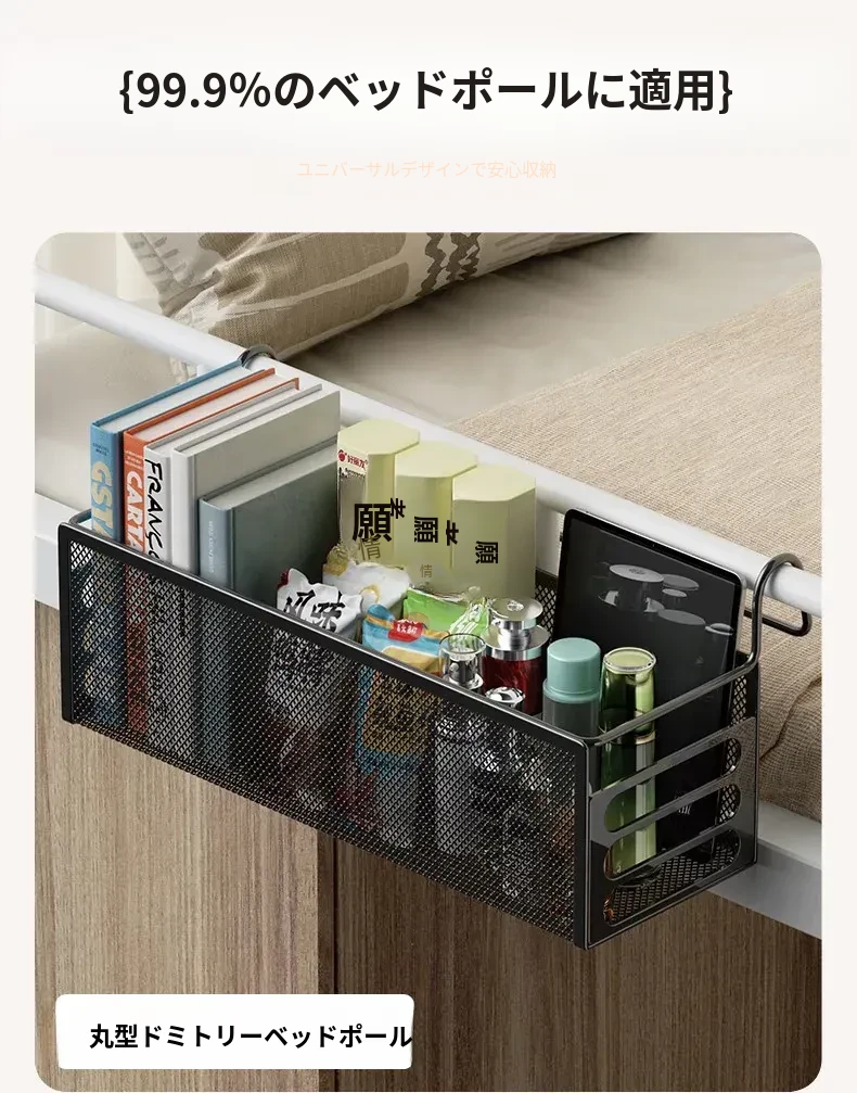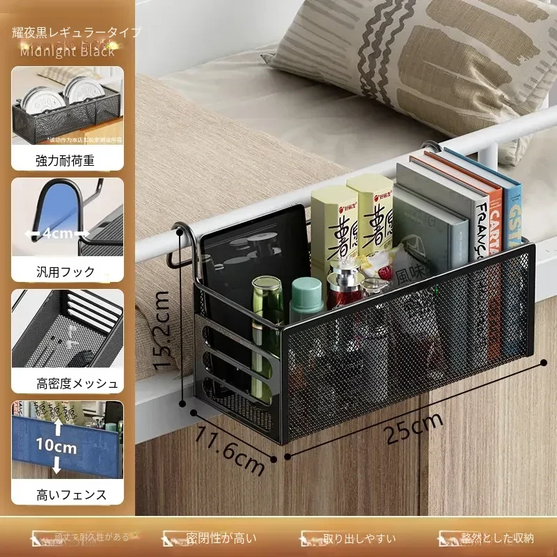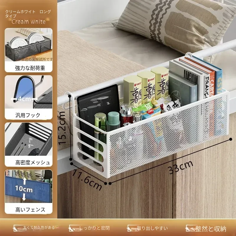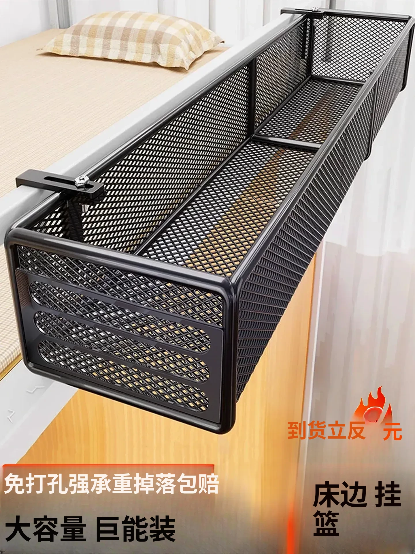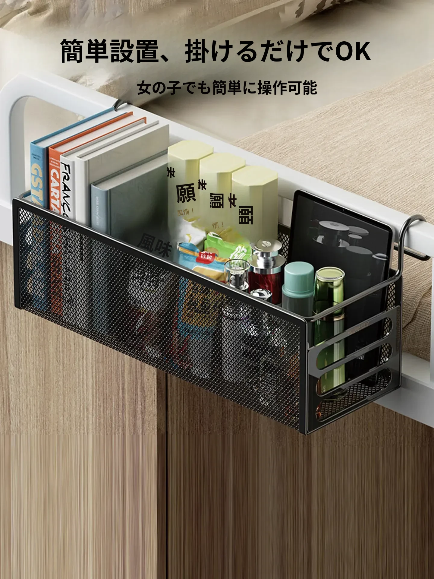 大学生必見!宿舎ベッドサイドハンギングバスケット - 簡単取り付け、穴あけ不要!上下段対応の収納ラックで、お菓子や小物をスッキリ整理。寝室の必需品、便利でおしゃれな収納アイテム!