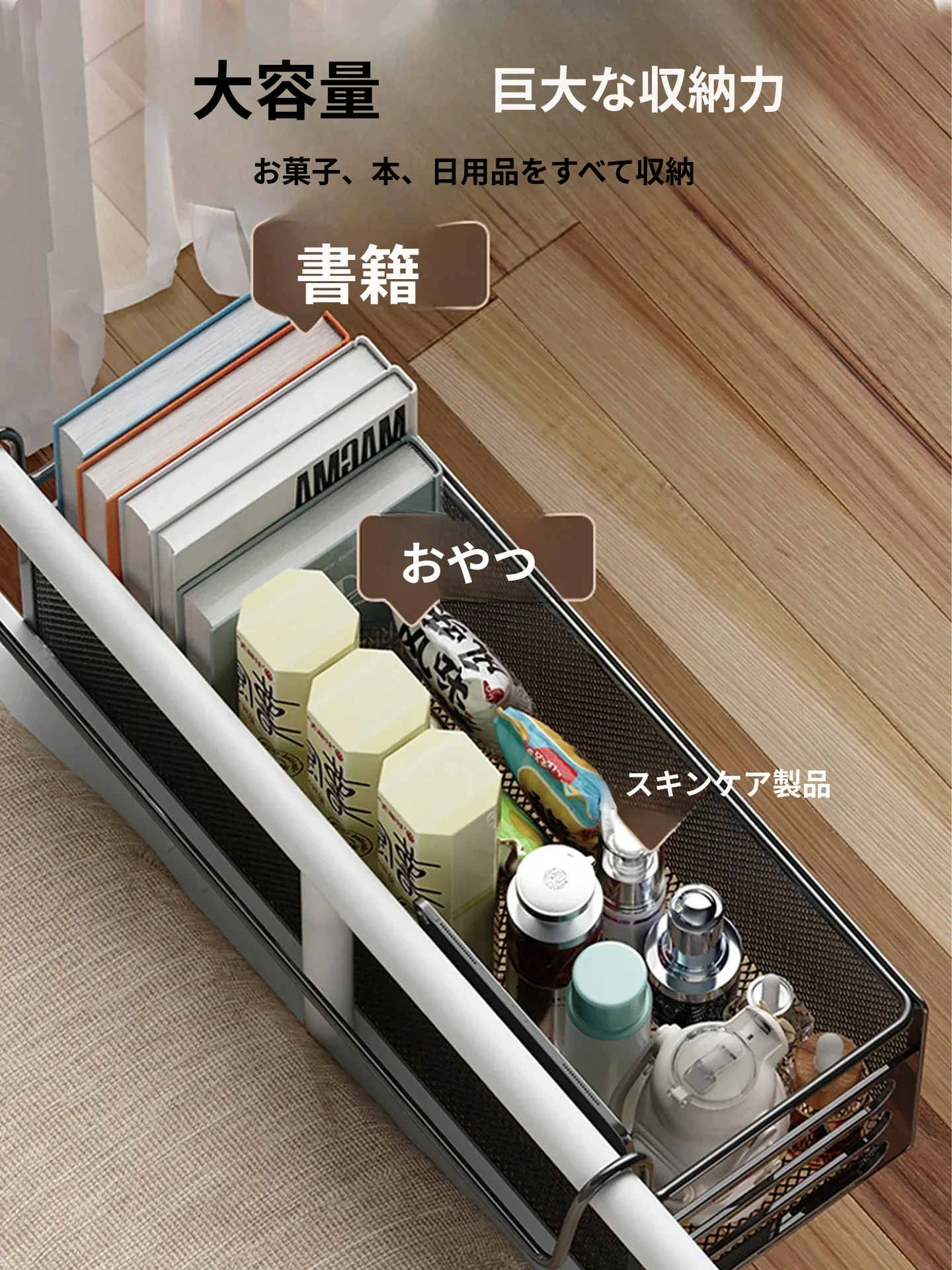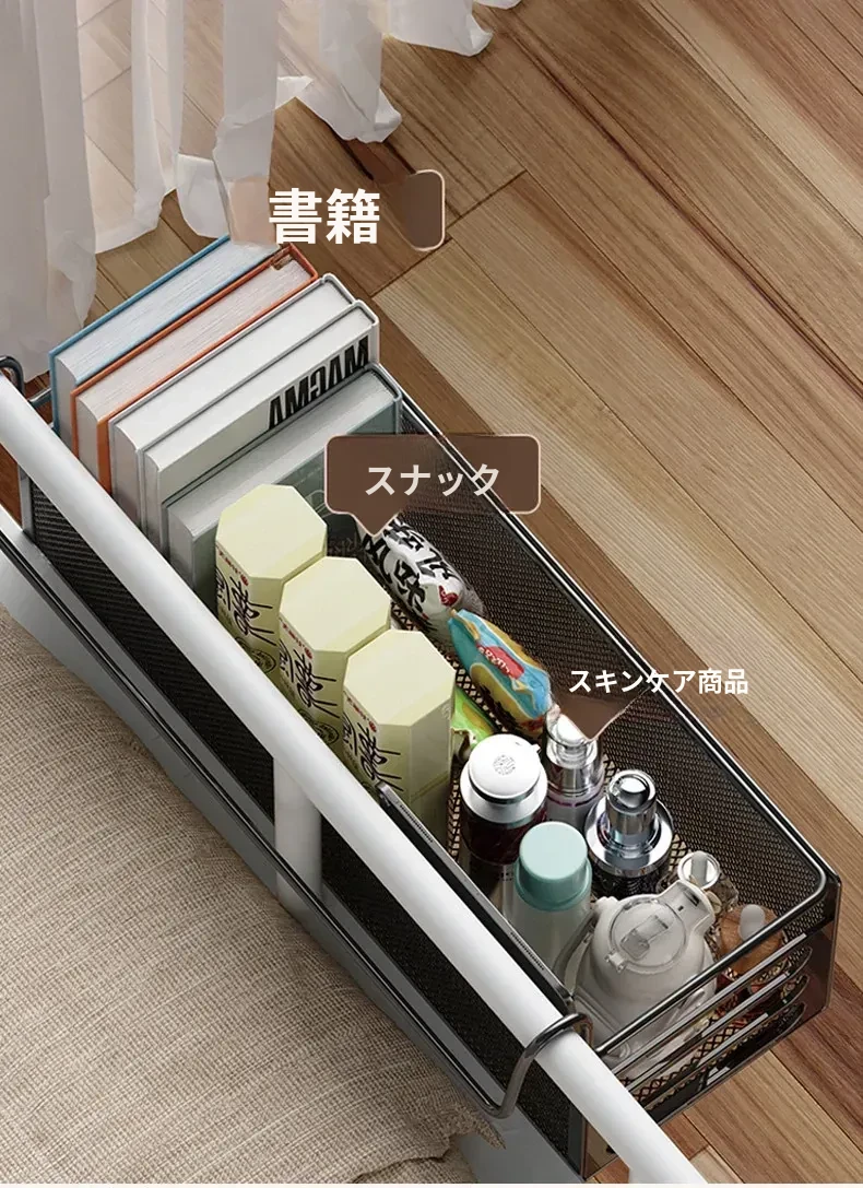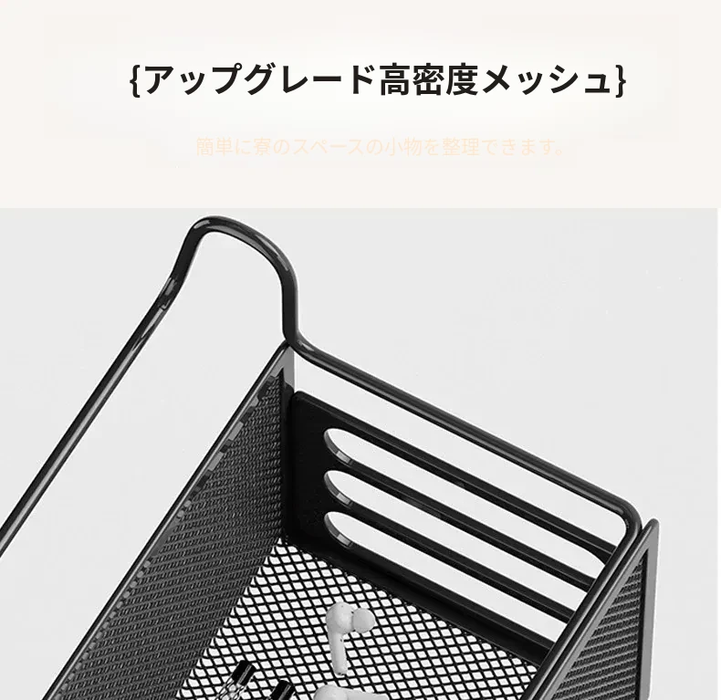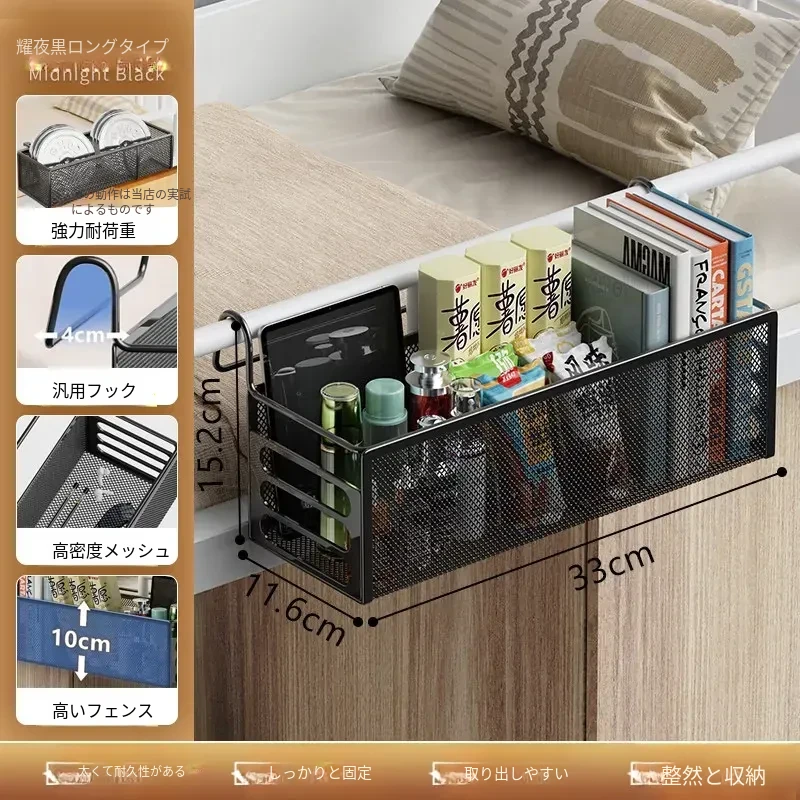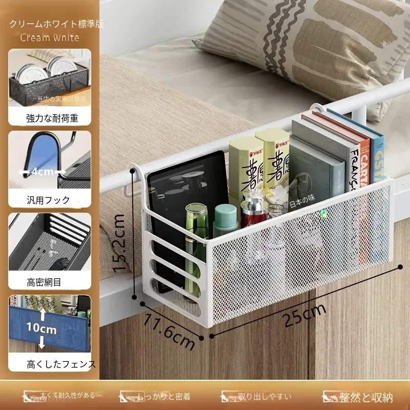 大学生必見!宿舎ベッドサイドハンギングバスケット - 簡単取り付け、穴あけ不要!上下段対応の収納ラックで、お菓子や小物をスッキリ整理。寝室の必需品、便利でおしゃれな収納アイテム!