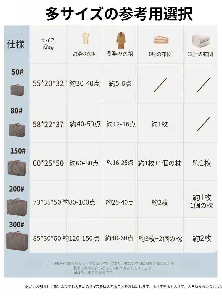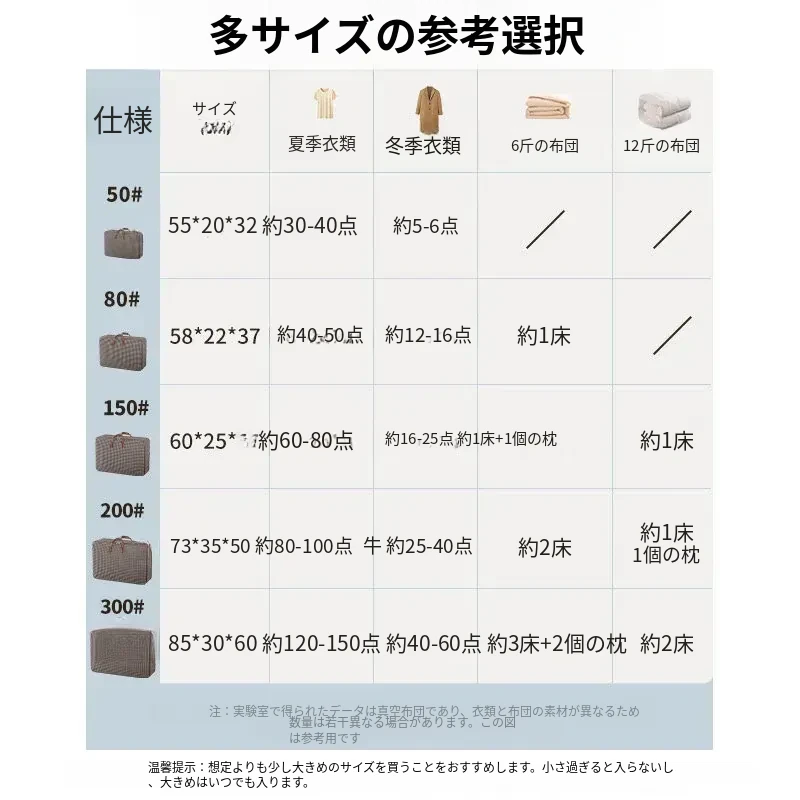 特大サイズ♈150#【約60-80着の衣服または約9斤の布団1枚が収納可能】