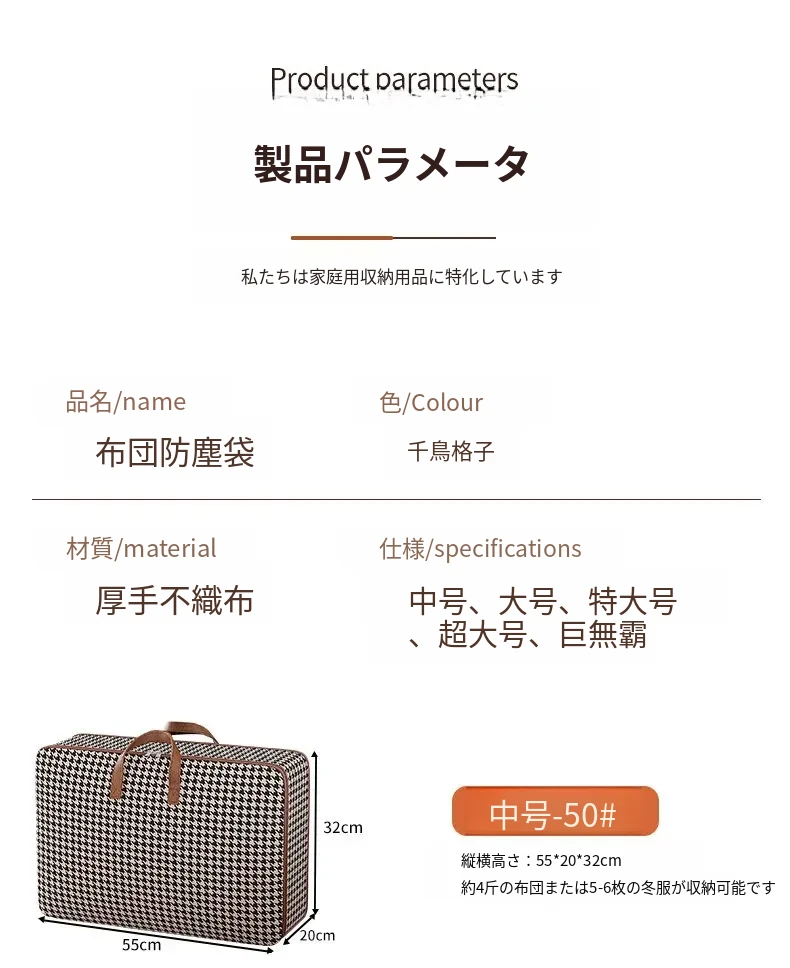 中サイズ◆50#【約30-40着の衣服または約4斤の布団1枚が収納可能】