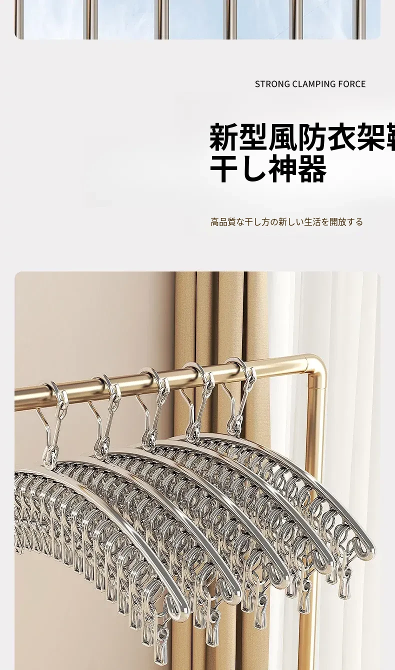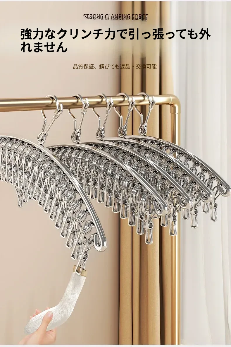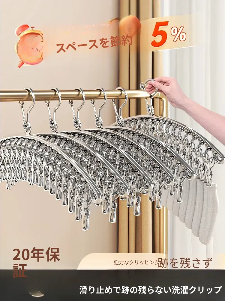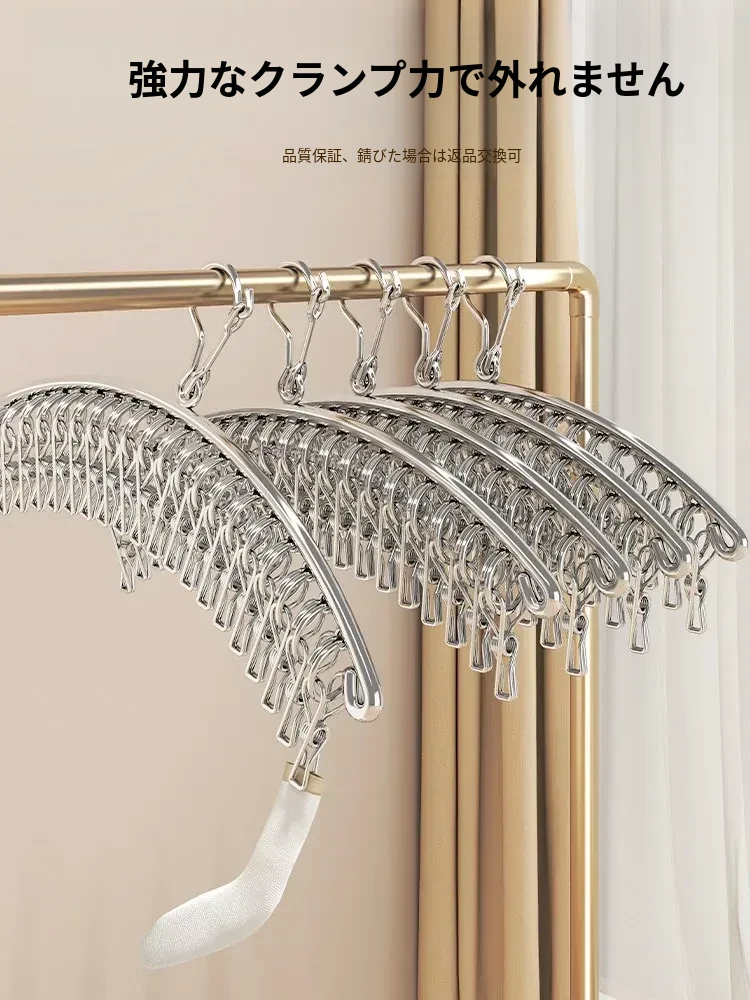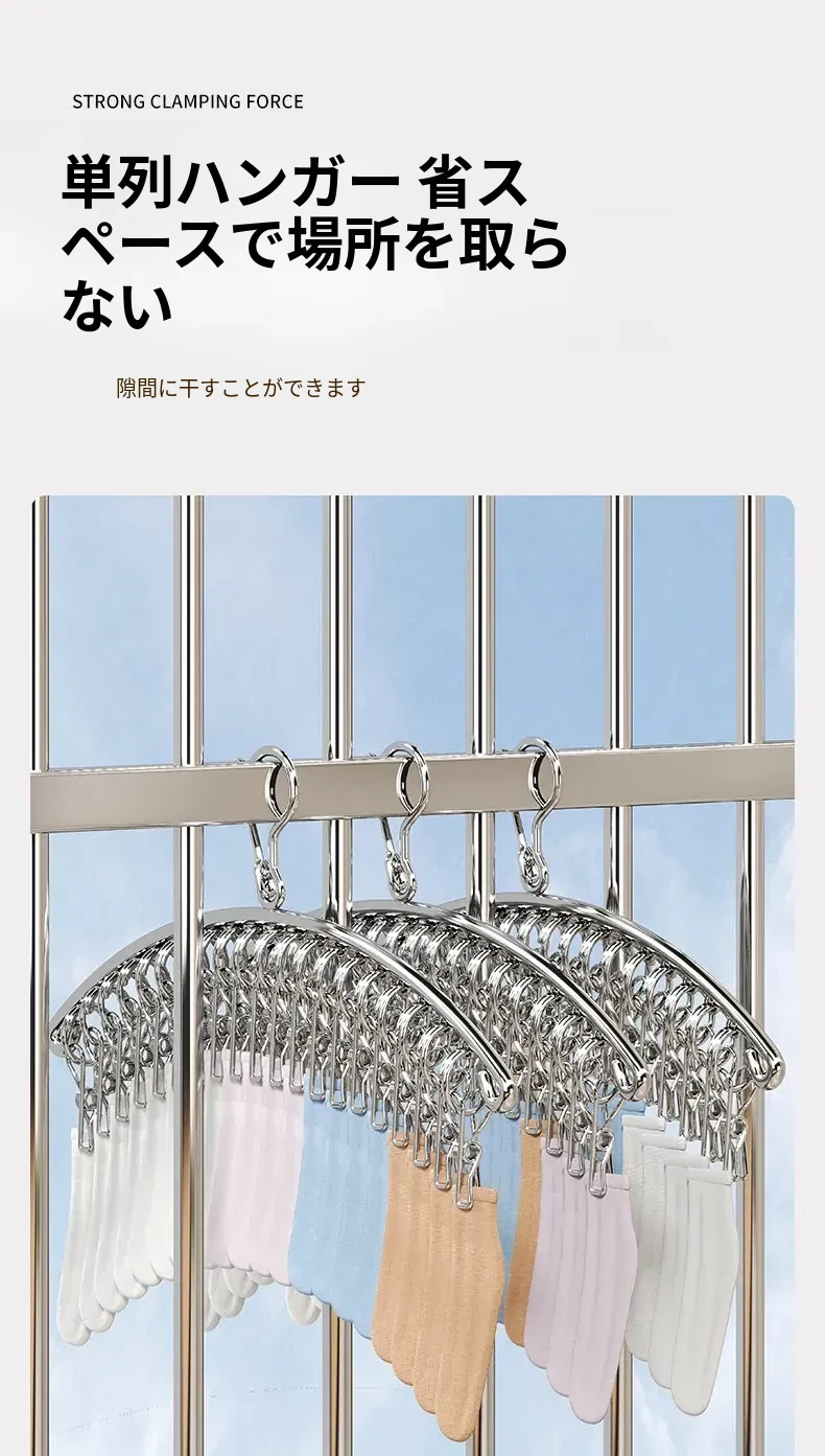 多機能ステンレス衣類干しハンガー - 便利なクリップ付き、靴下や下着をしっかり干せる宿舎の必需品!バルコニーでの使用にも最適!