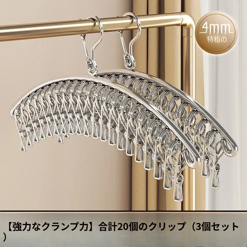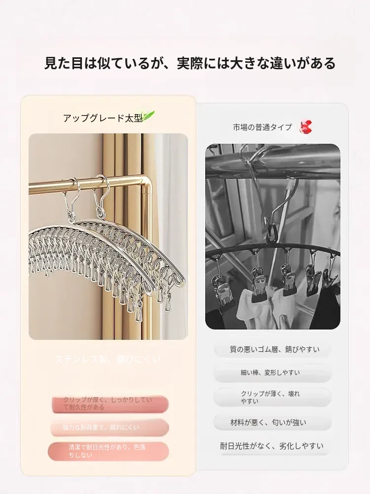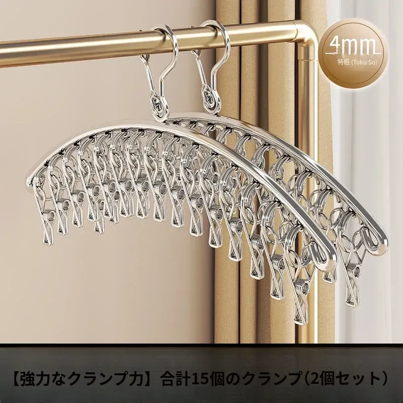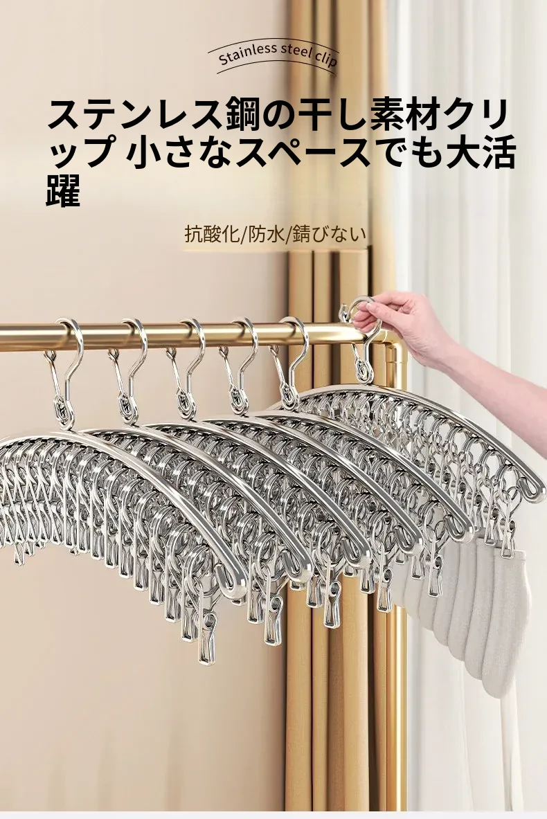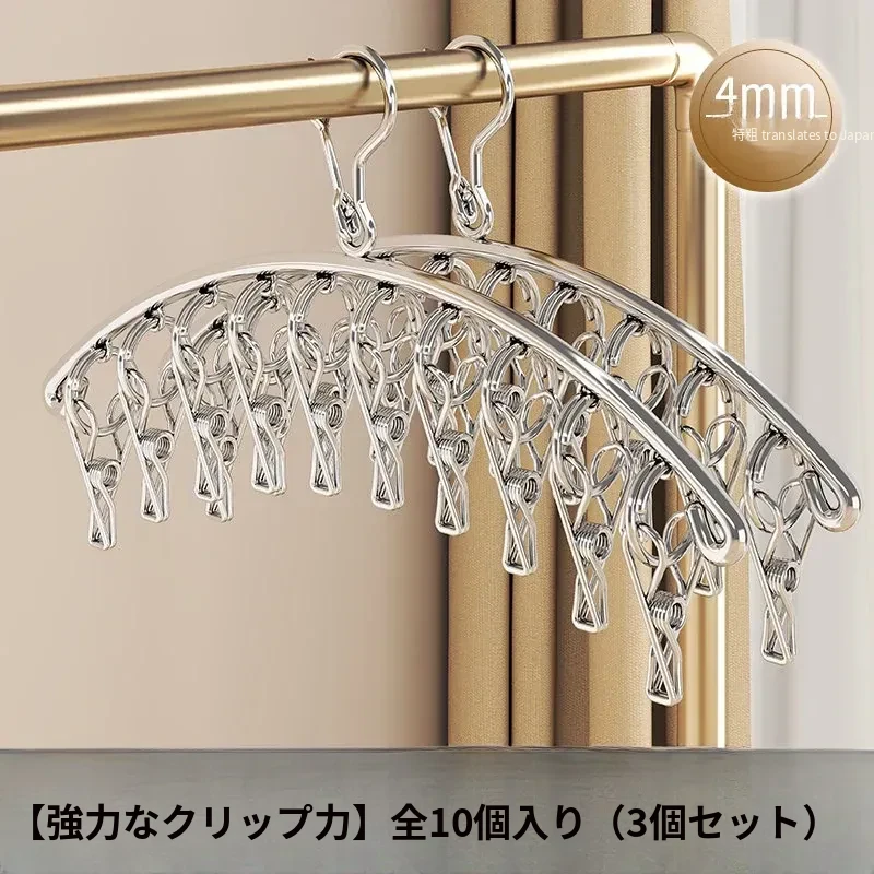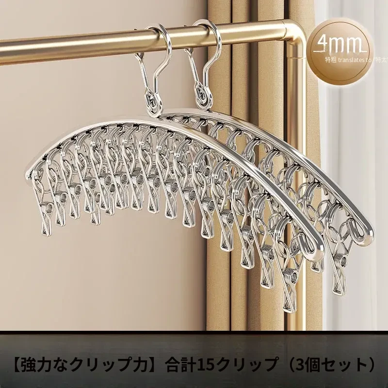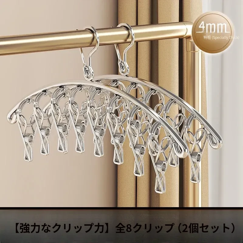 多機能ステンレス衣類干しハンガー - 便利なクリップ付き、靴下や下着をしっかり干せる宿舎の必需品!バルコニーでの使用にも最適!