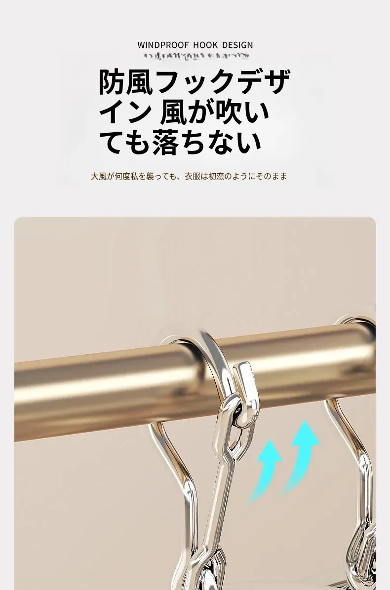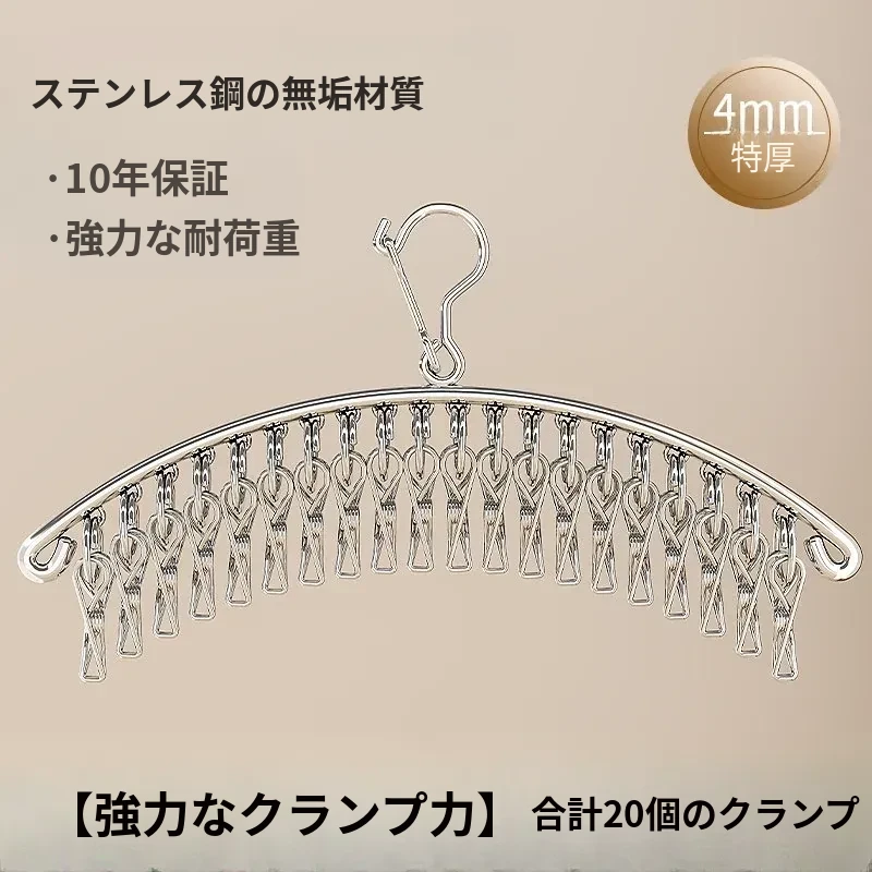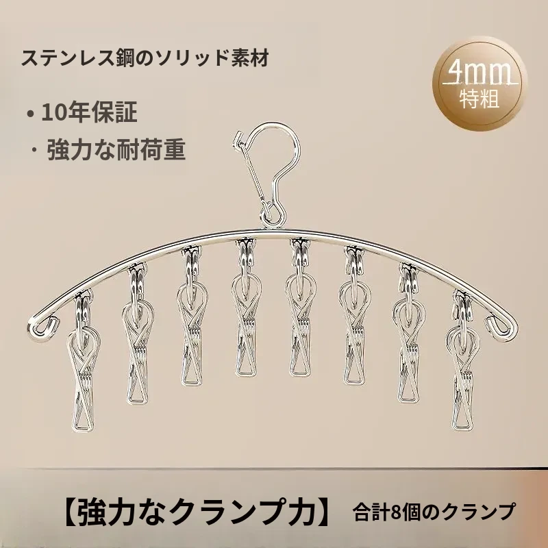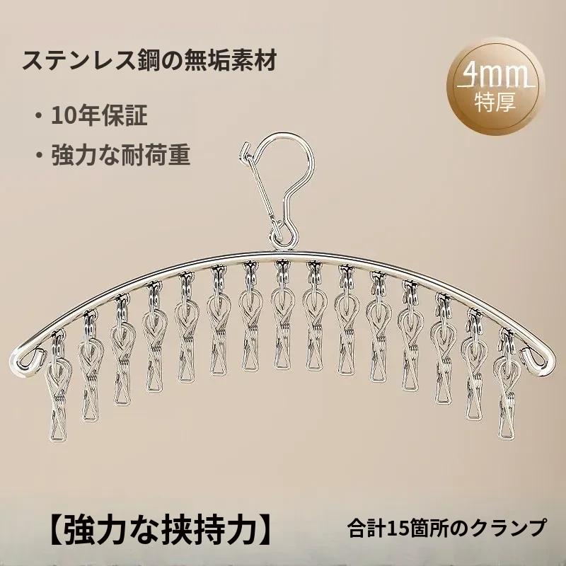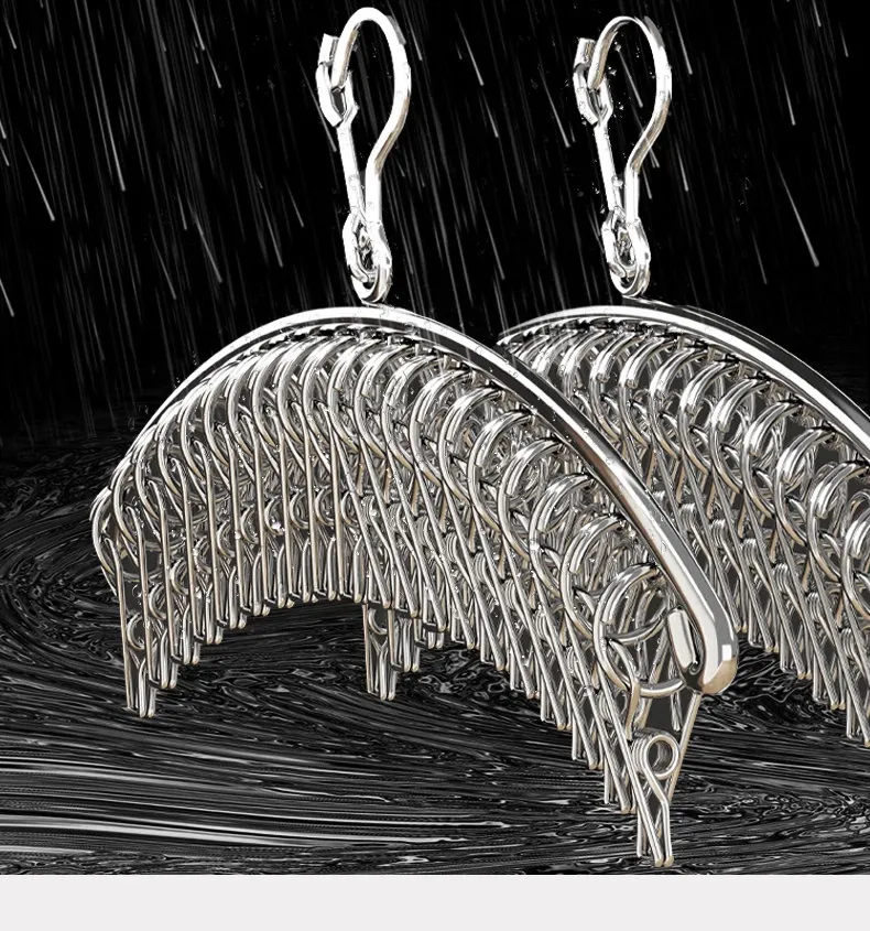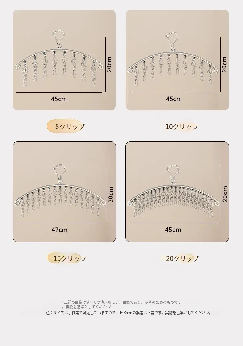 多機能ステンレス衣類干しハンガー - 便利なクリップ付き、靴下や下着をしっかり干せる宿舎の必需品!バルコニーでの使用にも最適!