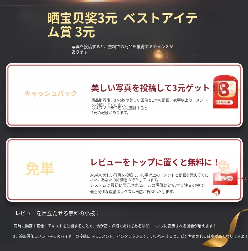 ⭐・商品到着後に写真を投稿で3元返金!⭐