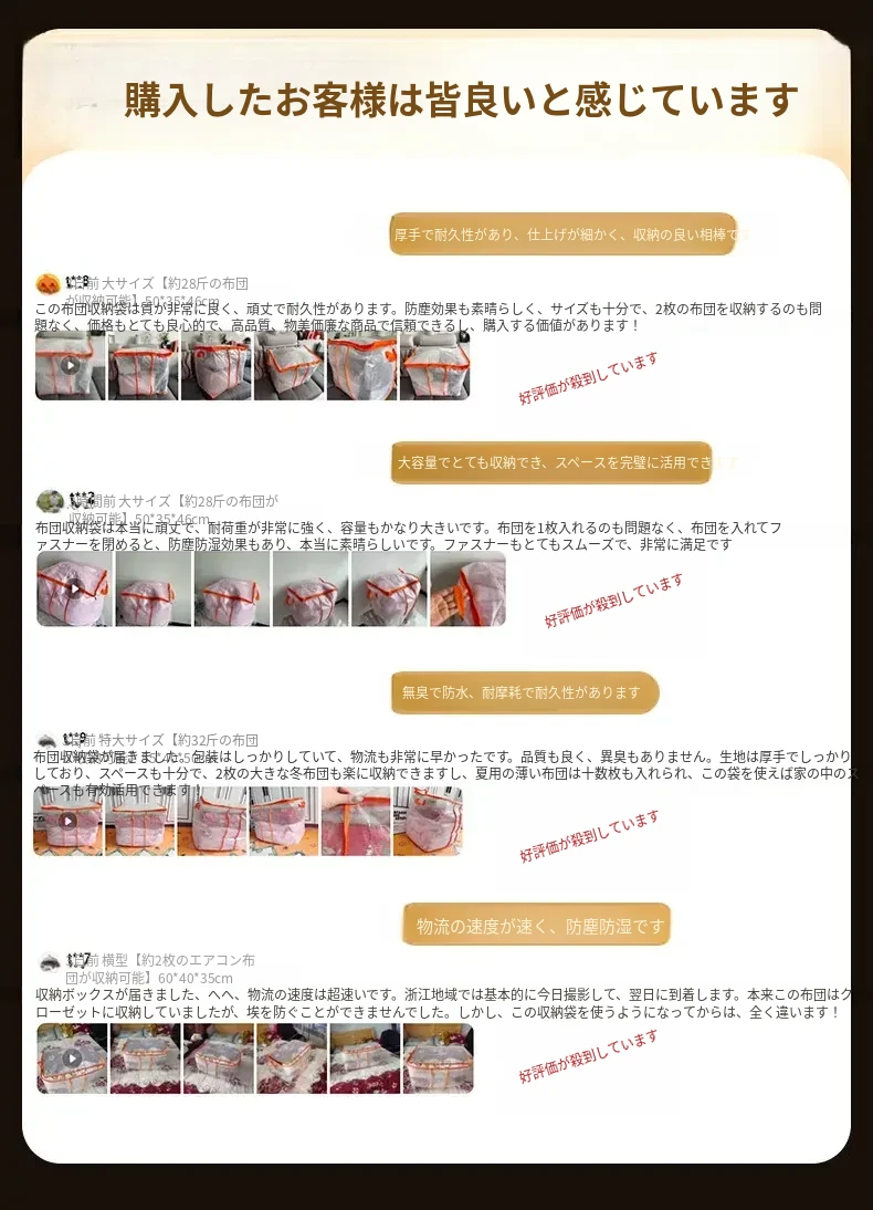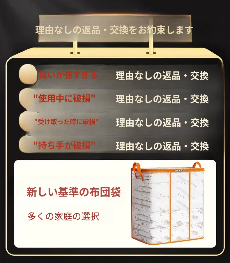 羽毛布団用厚手収納バッグ|大容量・真空圧縮|衣類整理の必需品!お部屋をスッキリとさせる神アイテム!