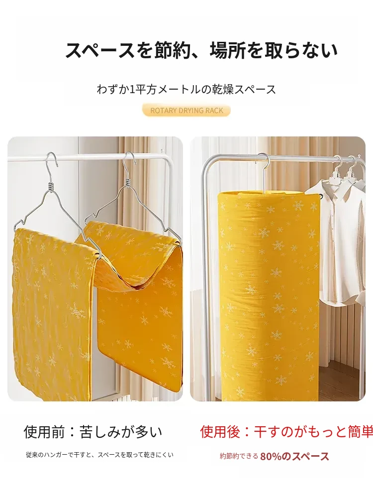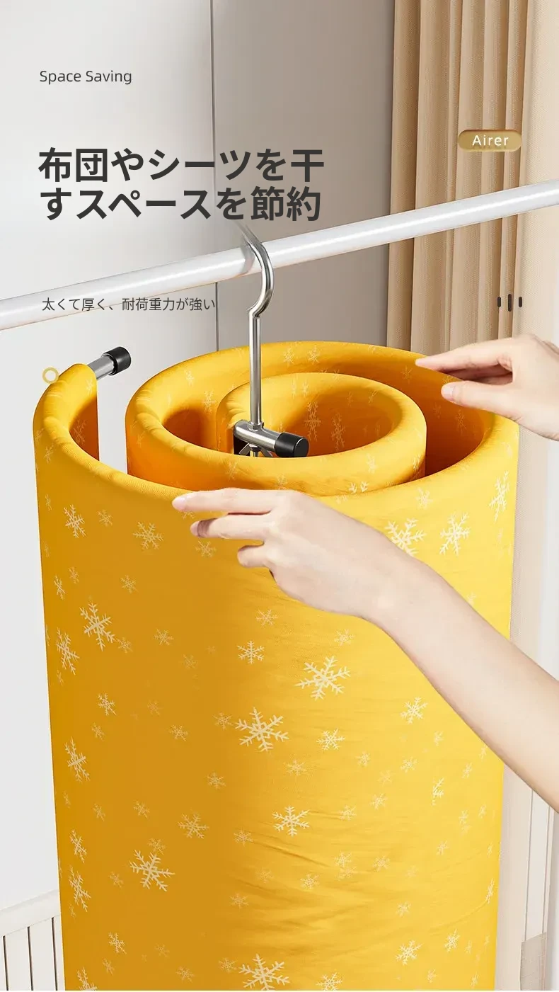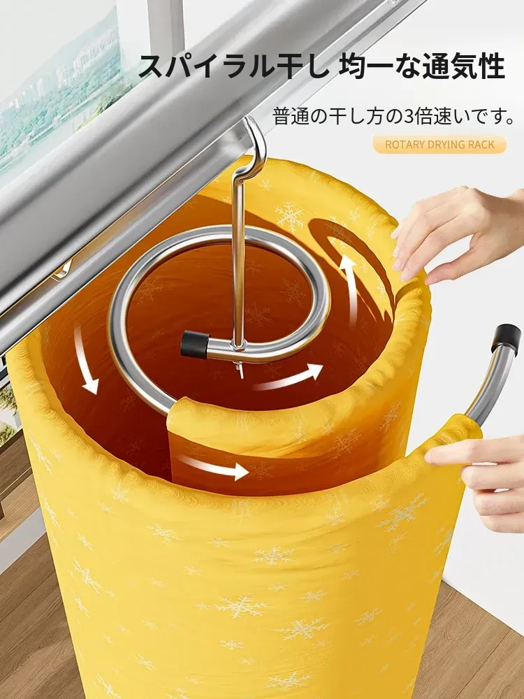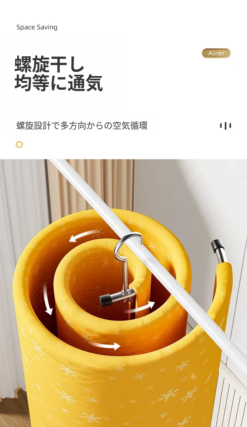 冬の必需品!螺旋式干し台で快適に布団やバスタオルを乾燥!風で飛ばされない安心設計の衣類干しラック。ベッドシーツやカバーも簡単に干せる便利アイテム!