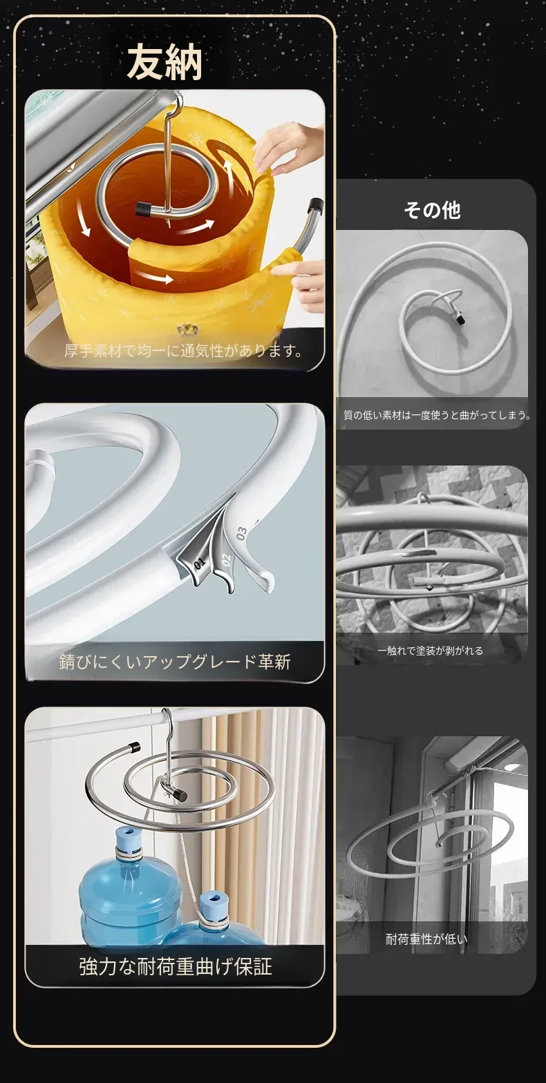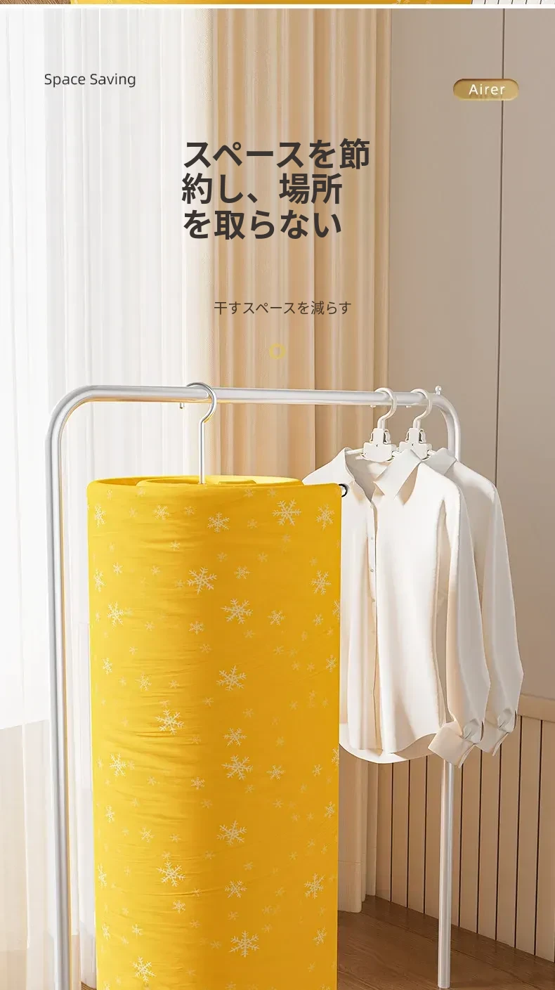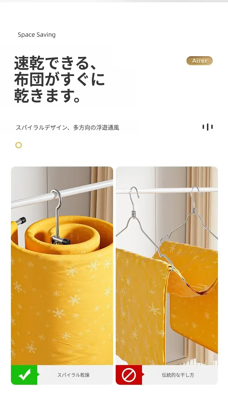 冬の必需品!螺旋式干し台で快適に布団やバスタオルを乾燥!風で飛ばされない安心設計の衣類干しラック。ベッドシーツやカバーも簡単に干せる便利アイテム!