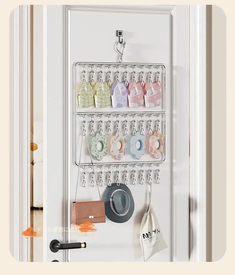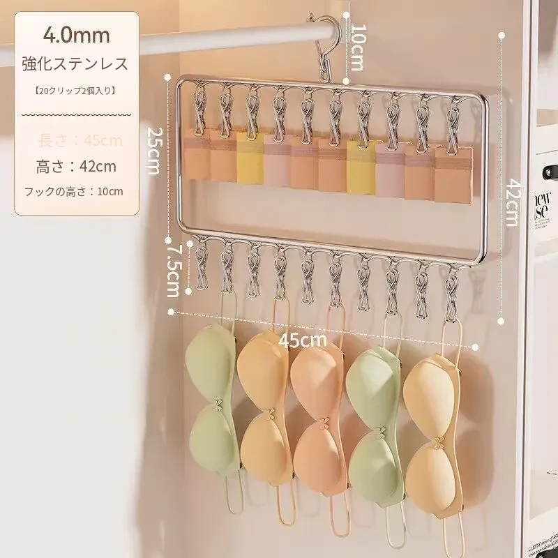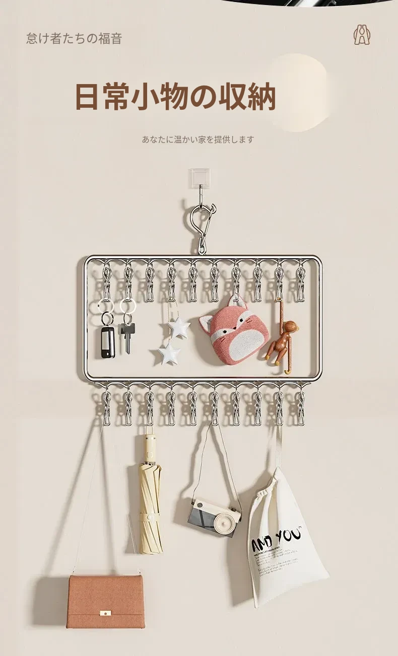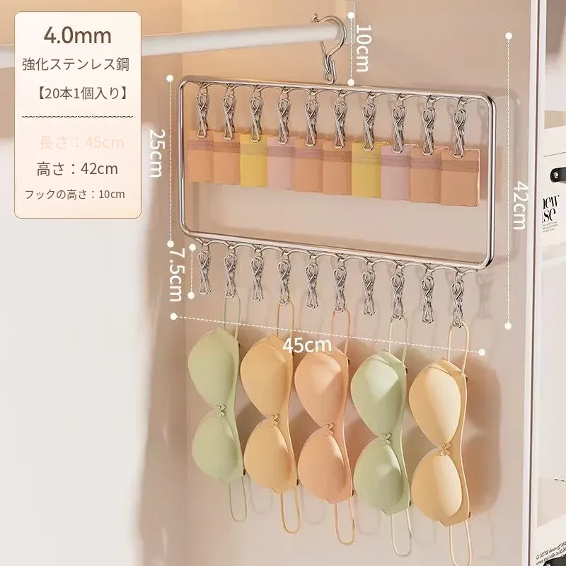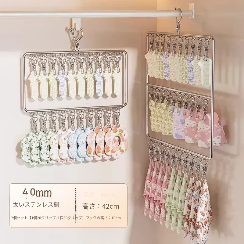 多機能ソックス&タオル乾燥ハンガー - ステンレス製で風に強い、寮生活に最適なクリップ付き!しっかり固定して、快適な乾燥を実現!
