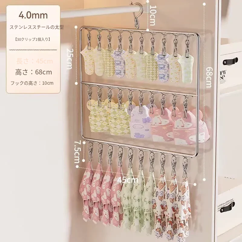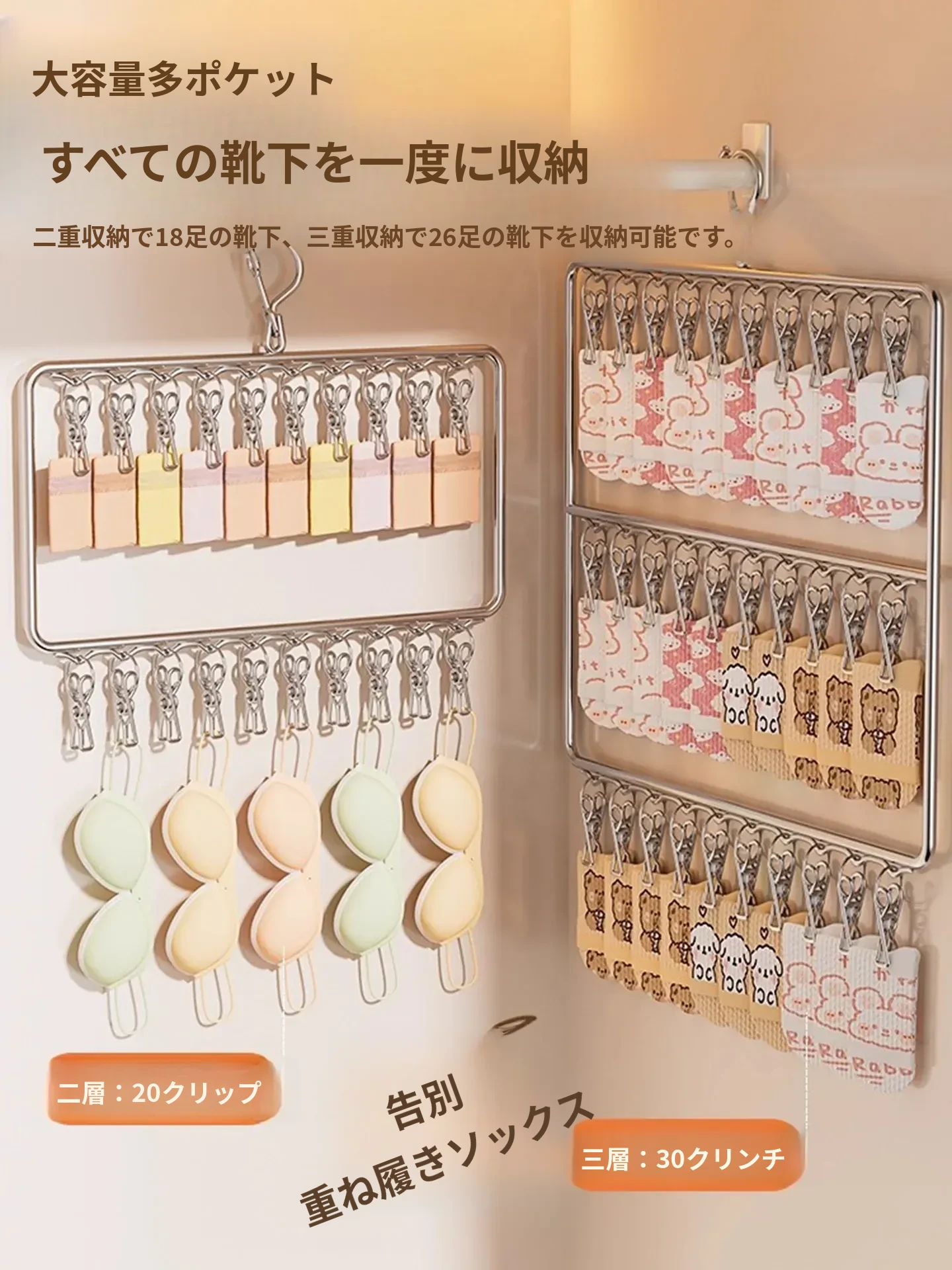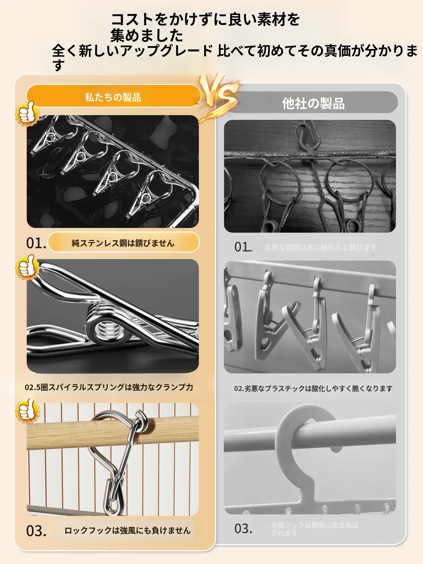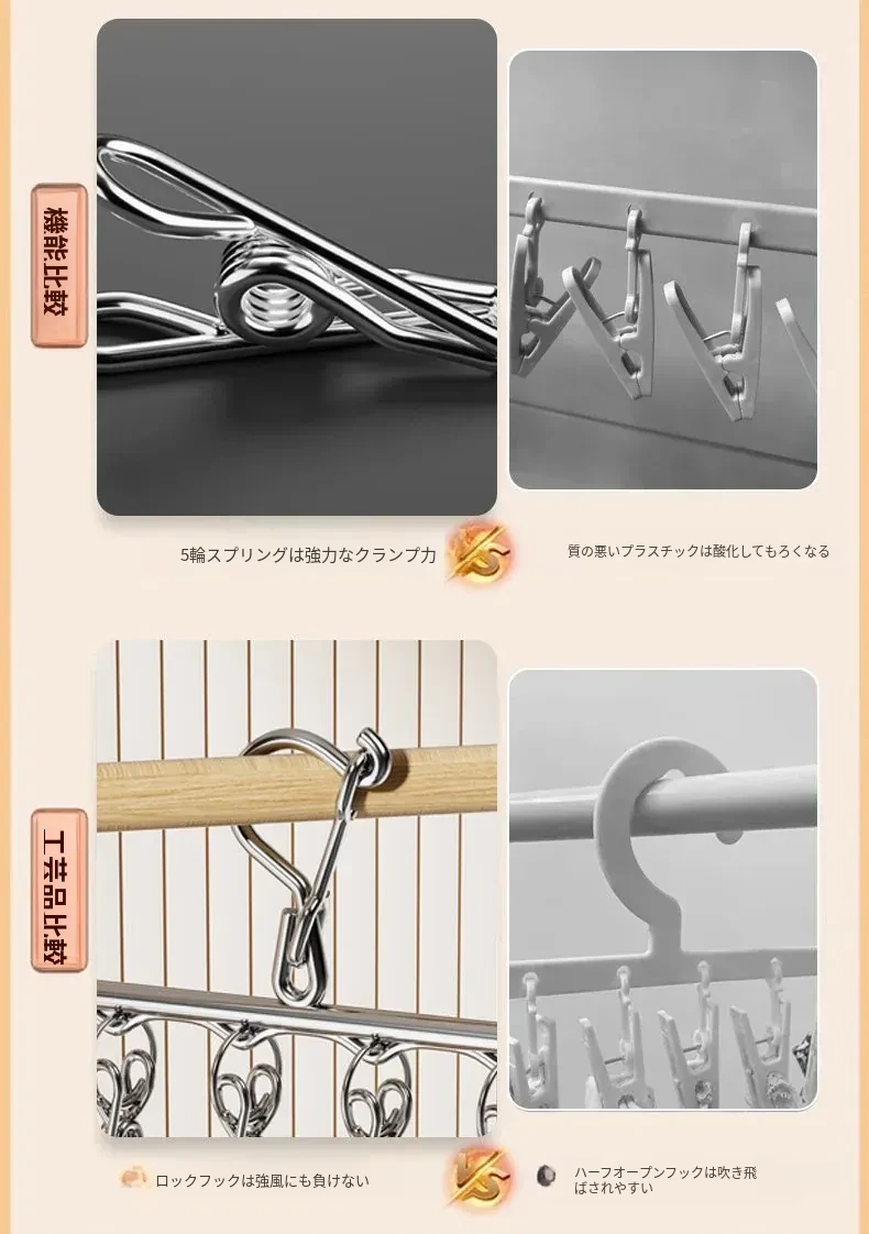 【セット内容】二層20クリップ+三層30クリップ【クリップ力強力⭐無臭】防風/防錆/省スペース