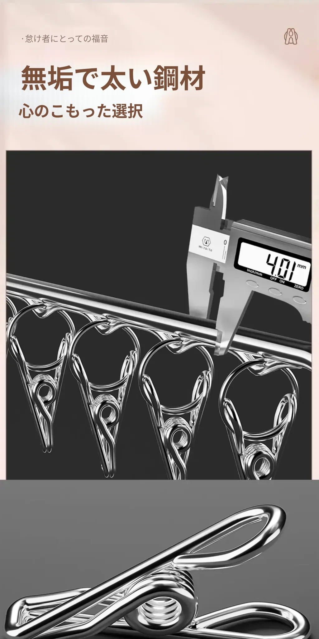 太めの二層【体験一個セット···20クリップ】太めの防風/防錆/省スペース