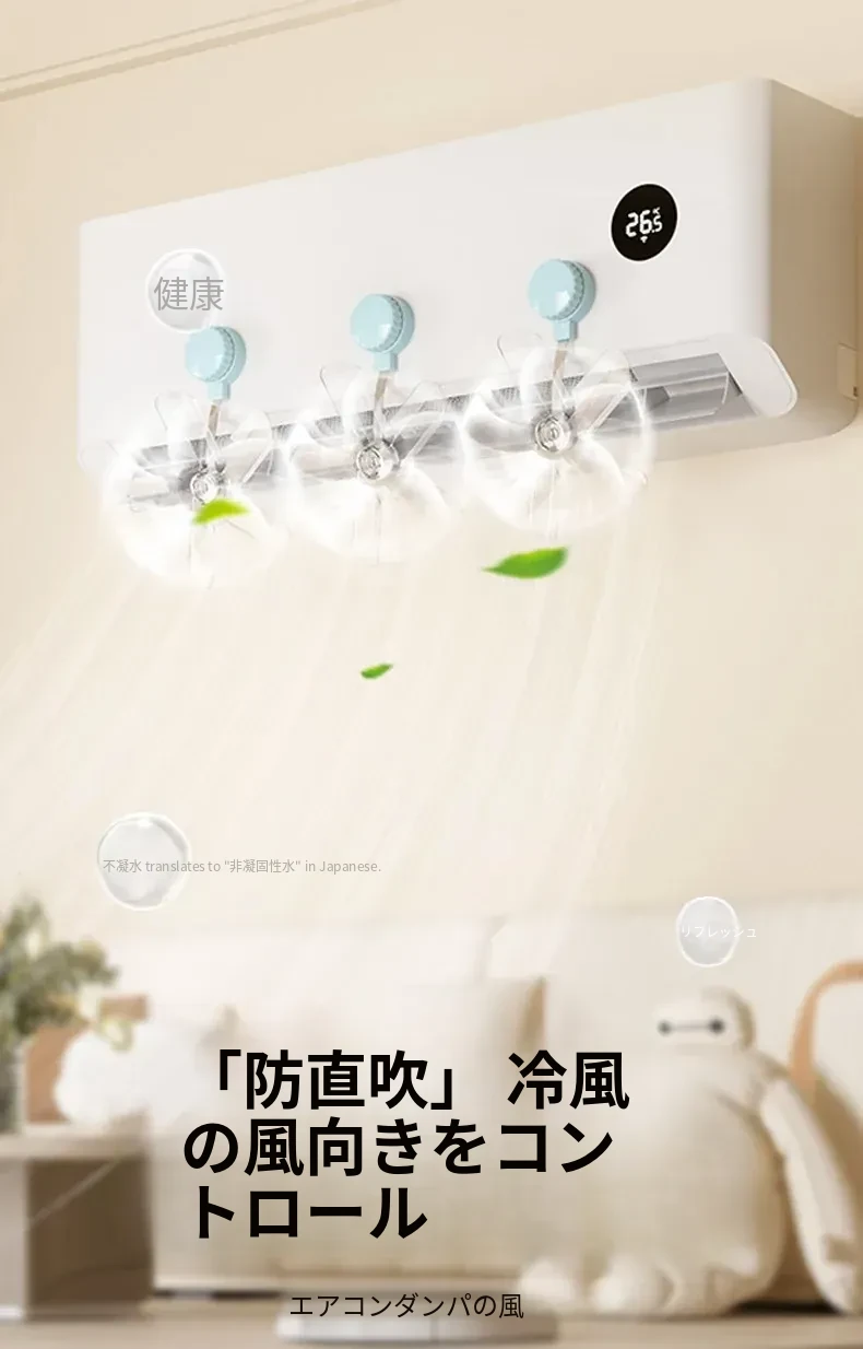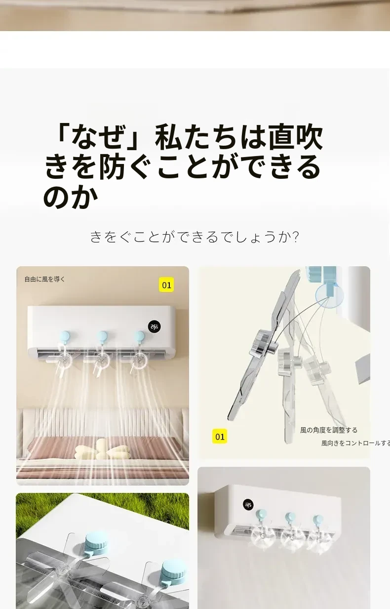 エアコン用風向調整ファン 吸盤式壁掛け 直吹き防止パネル 家庭用エアコン内機の風向を自在にコントロール!快適な風をお届けする必須アイテム!