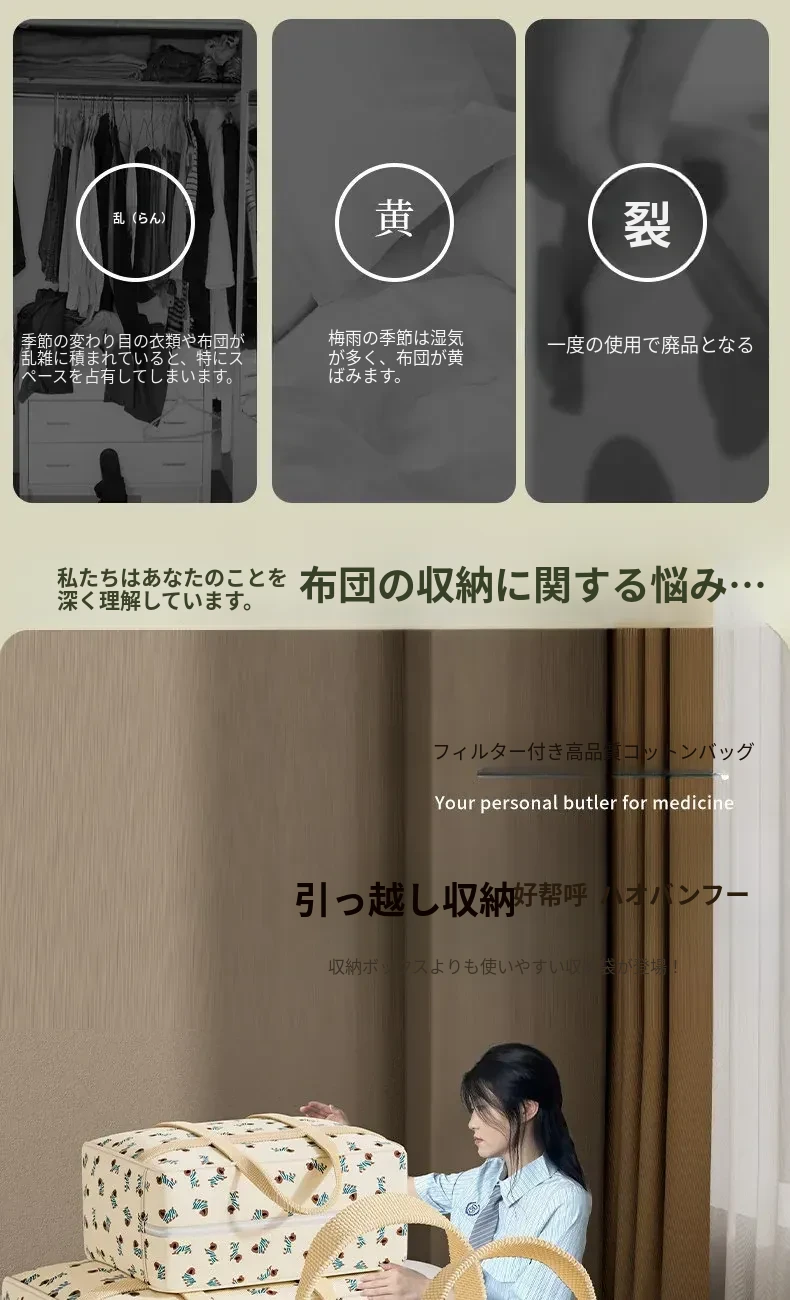 防水・防潮の大容量収納袋!引っ越しや衣類整理に最適な布団専用バッグで、すっきり収納。あなたの大切なアイテムをしっかり守ります!