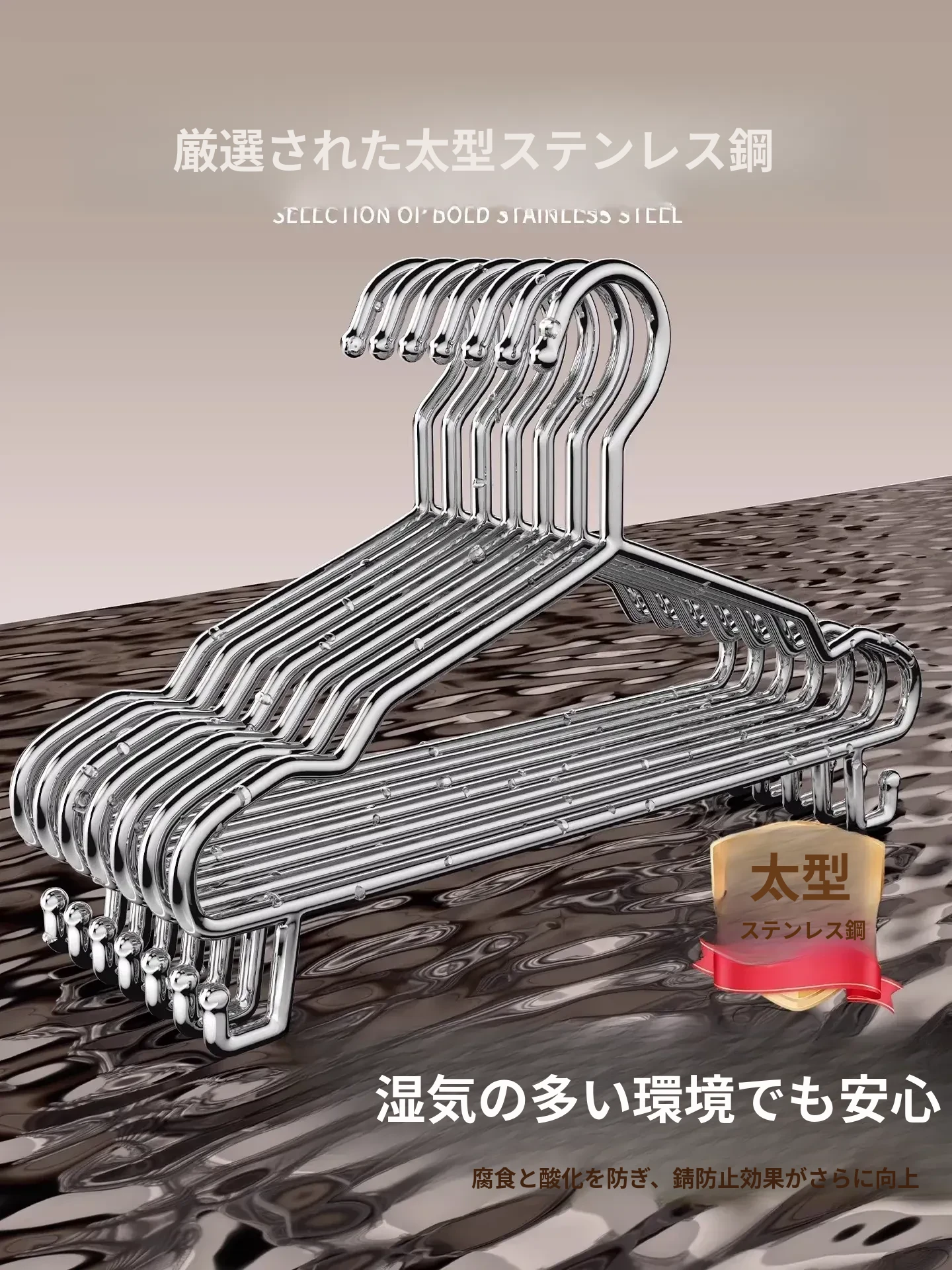 ステンレス製ハンガー - 家庭用・太くて厚い滑り止めデザイン!学生寮専用、衣類干しに最適なフック式ハンガー。丈夫で長持ち、衣類をしっかり支えます。