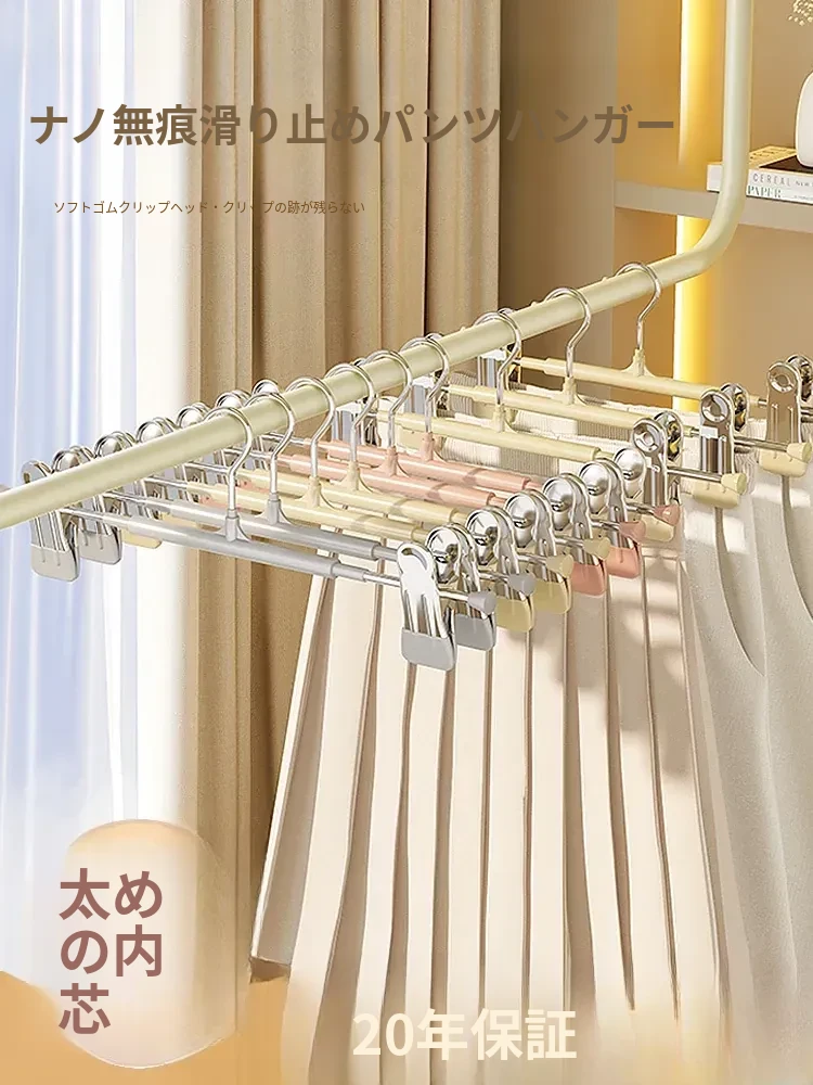 家用無痕ステンレス製パンツクリップ|JK衣類ハンガー・収納の必需品!スカートやパンツをしっかり固定、衣類を美しく乾かす便利アイテム!