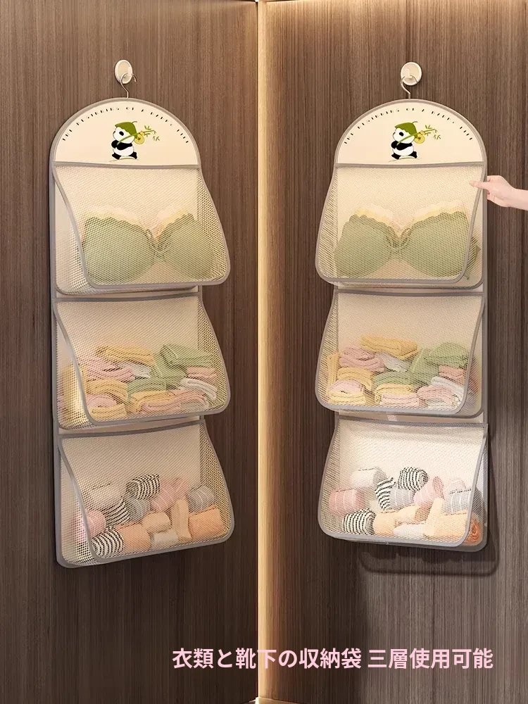 学生寮やクローゼットに最適!ダブルサイドネットポケットの下着・靴下収納ハンギングバッグ - スペースを有効活用し、整理整頓が簡単に!
