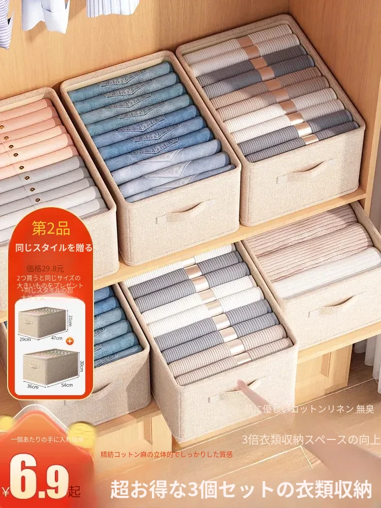 収納力抜群!折りたたみ式の衣類収納ボックス - コットンリネン素材で、洋服やパンツをスッキリ整理。引き出しタイプで使いやすく、家庭での収納に最適な便利アイテム!