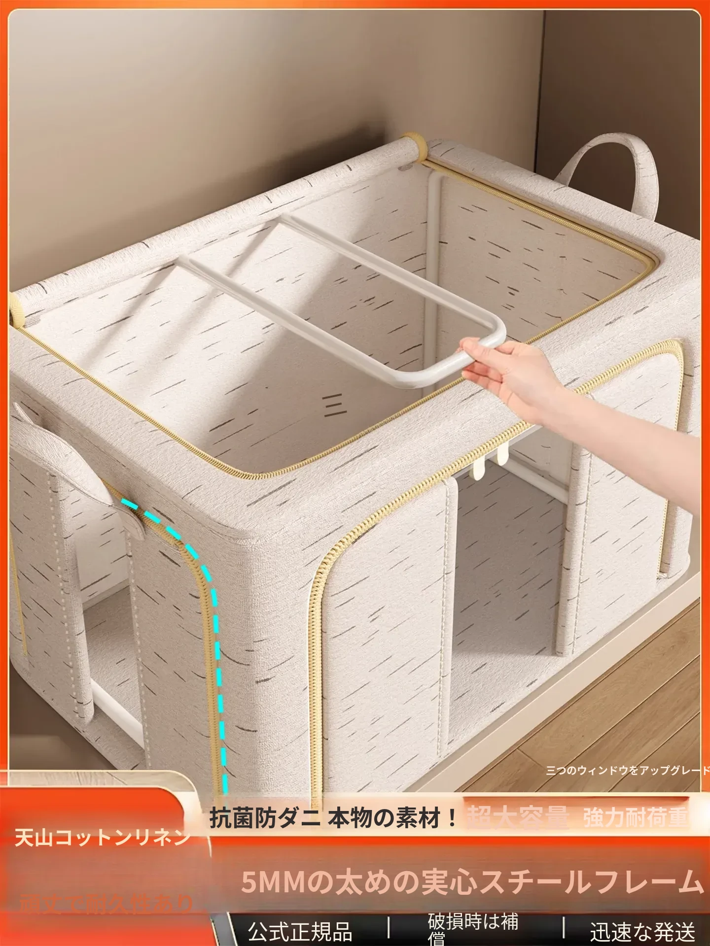 大容量!棉麻素材の衣類収納ボックス - おしゃれで折りたたみ可能な収納バッグ、家族の衣類整理に最適な神アイテム!