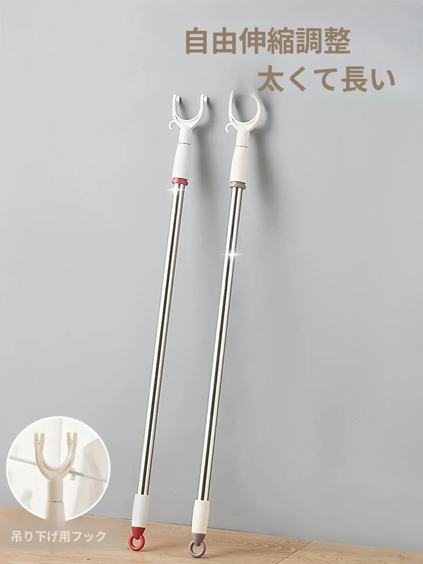 家用伸縮式衣類干し竿 - 宿舎にもぴったり!長さ調整可能で、衣服をしっかり支える。便利なデザインで、スペースを有効活用!おしゃれな部屋作りにも最適です!