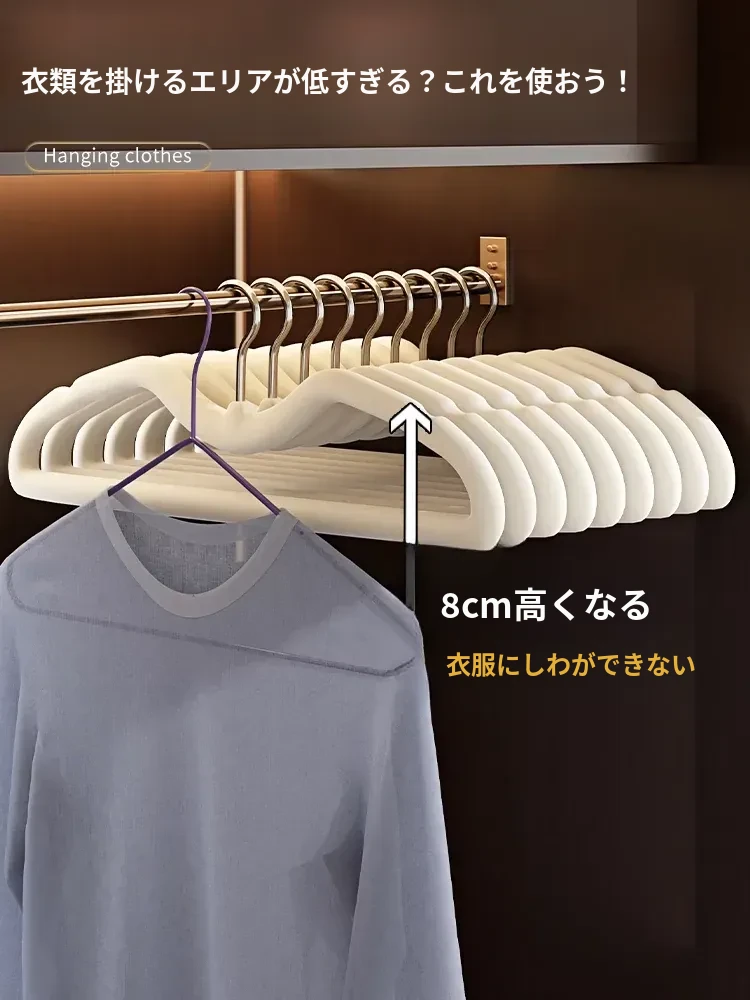 無痕防滑衣類ハンガー - 家庭用・学生寮に最適!掛けやすく、衣類が落ちない!おしゃれで機能的な衣服干しラック。収納スペースを有効活用し、毎日のコーディネートをサポートします!