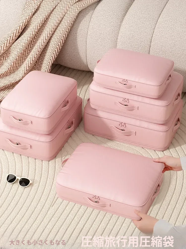 旅行に最適!衣類整理バッグ・圧縮袋セット - スーツケース内をスッキリ整理!衣服や布団もコンパクトに収納可能。出張や旅行に便利な持ち運びやすさ!