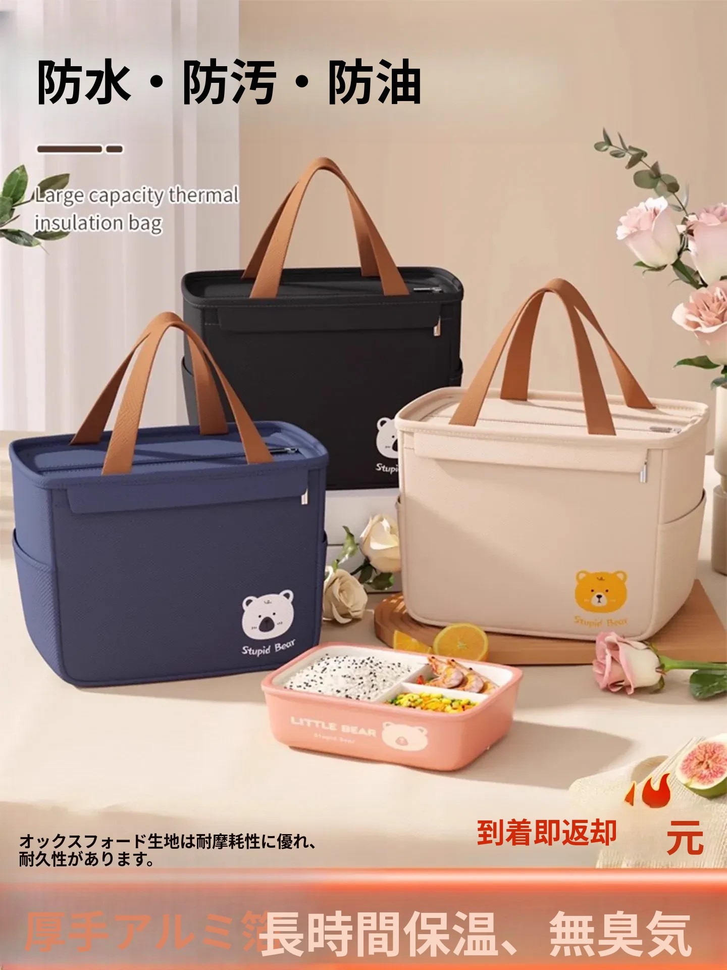 お弁当保温バッグ アルミ箔厚手 手提げ 小学生・子供用 ランチバッグ お持ち帰り便利!美味しさをキープするお弁当袋で、学校や遠足にぴったり!