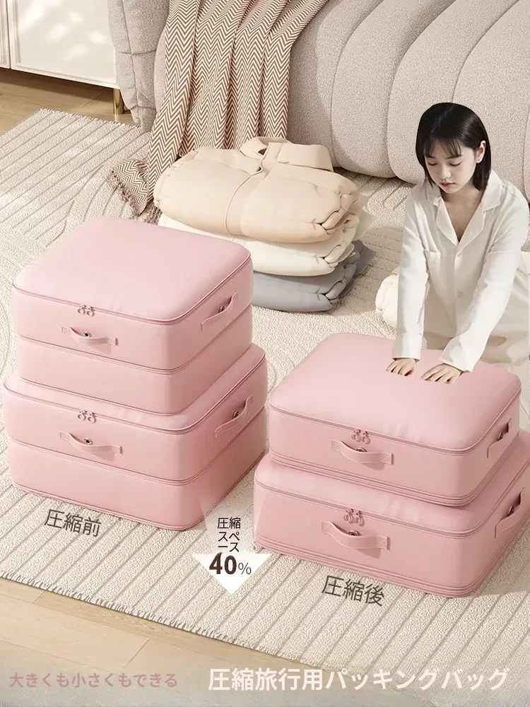 旅行や収納に最適!衣類圧縮袋 - 家庭用・旅行用、便利なキャリーケース付き!ダウンジャケットや衣服の整理に特化したコンパクトなバッグです。あなたのクローゼットをスッキリ整頓!